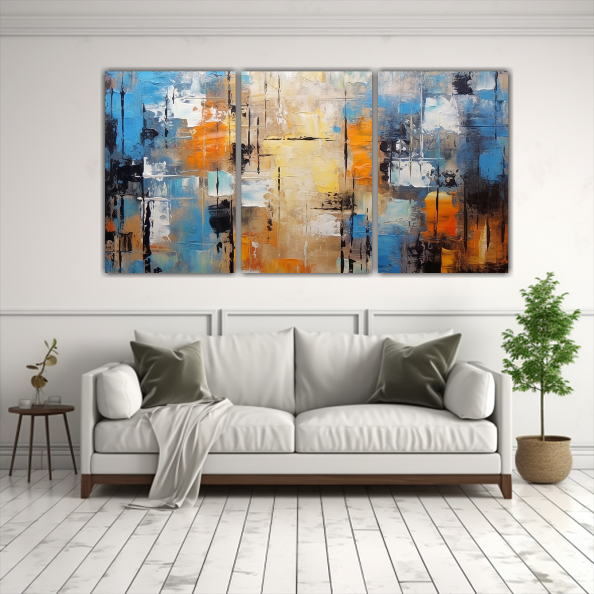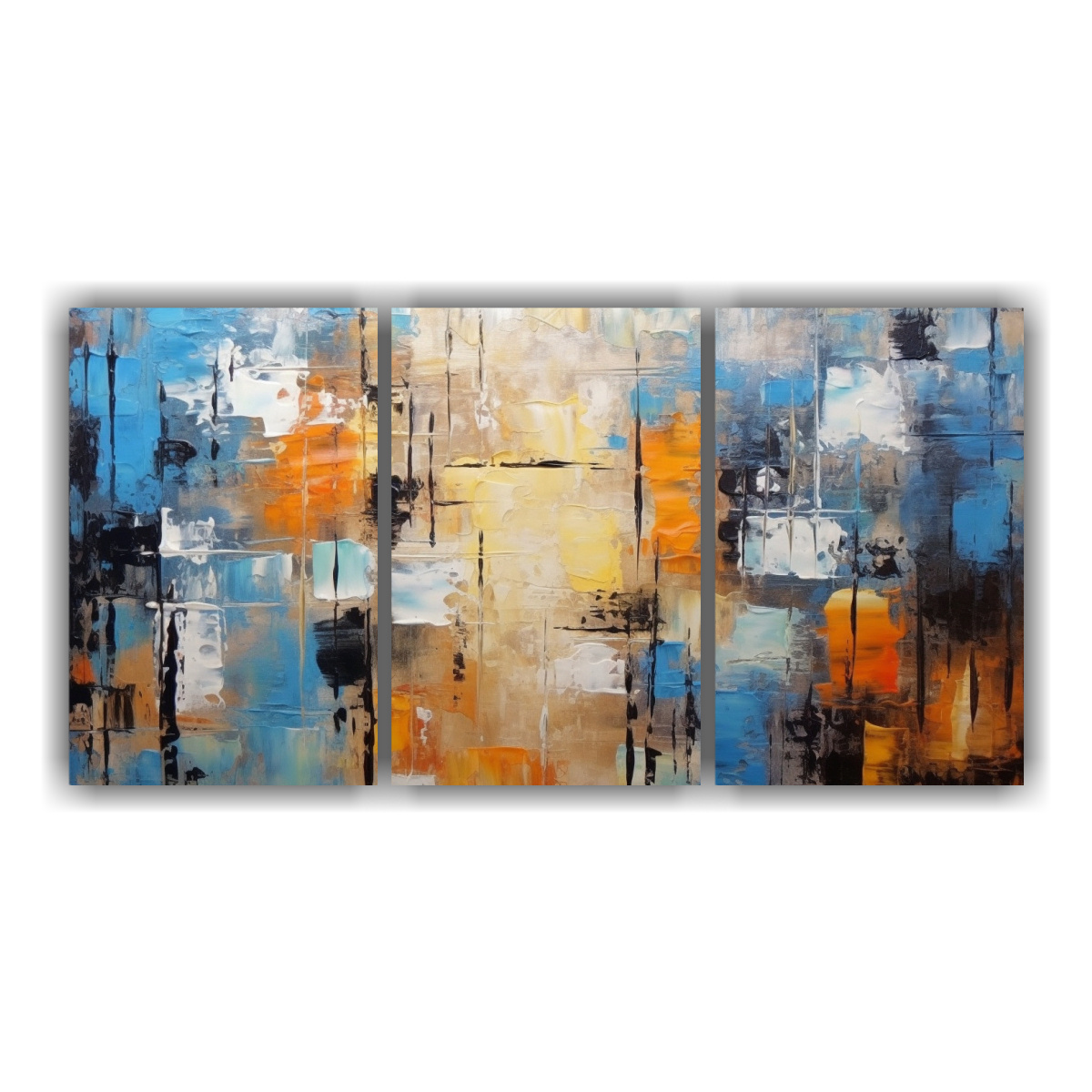 Decora tus espacios con estilo y elegancia con este set de 3 cuadros abstractos en tonos Azul Marino, Gris y Dorado