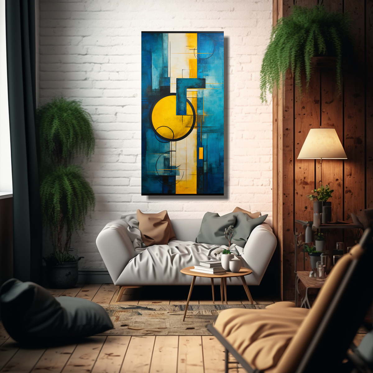Te recomendamos colocar este cuadro en tu sala de estar para crear un ambiente relajado y sofisticado Combínalo con muebles en tonos neutros como el blanco o el gris, y añade cojines y accesorios en colores complementarios como el mostaza o el turquesa Verás cómo este cuadro se convierte en el punto focal de tu espacio, agregando personalidad y estilo a tu hogar