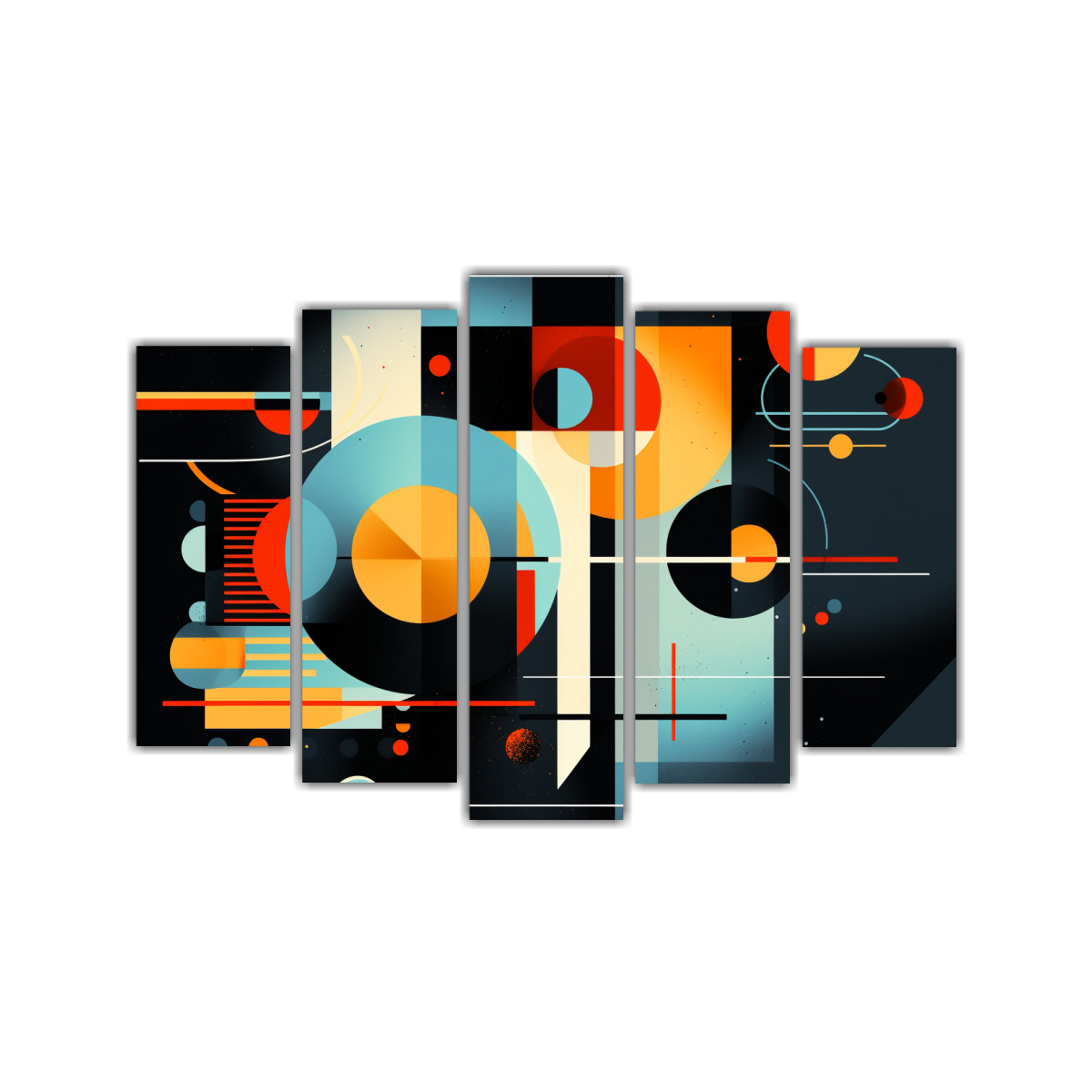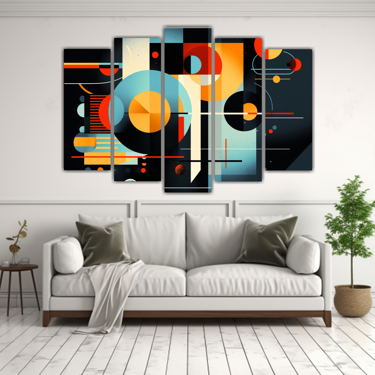 Este cuadro de cuadros abstractos coloridos con formas y azules sería perfecto para dar vida a tu sala de estar Colócalo sobre un sofá blanco para crear un contraste elegante y moderno Complementa la decoración con cojines en tonos turquesa y dorado para un ambiente sofisticado