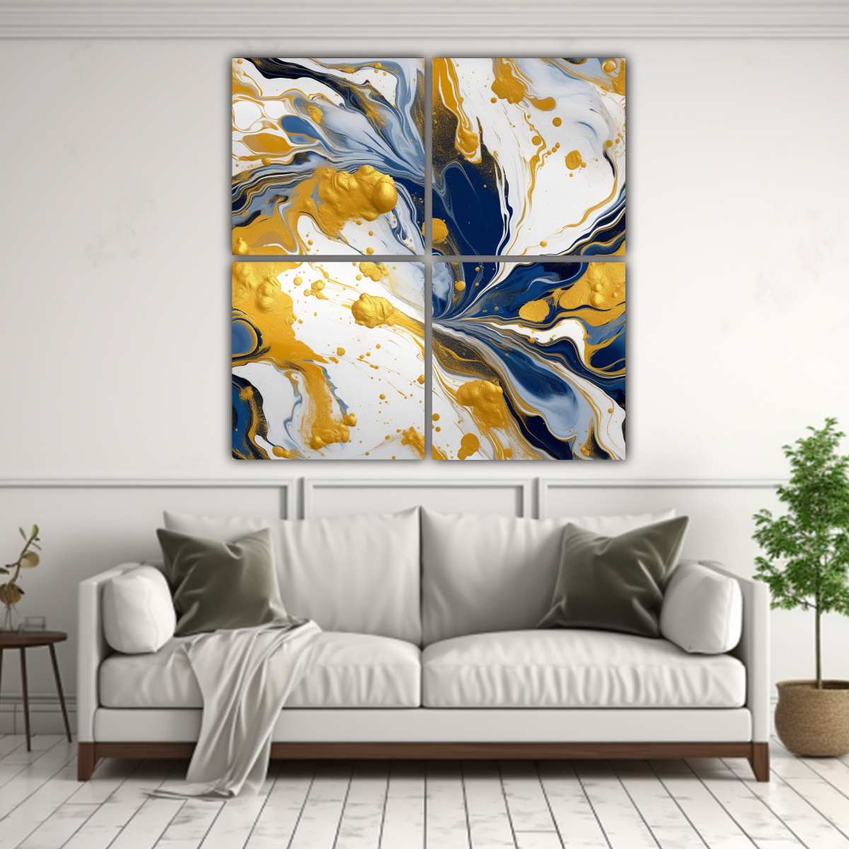 DecoCuadros te ofrece los Cuadros Abstractos Composición Dinámica Azul Oro Blanco más económicos y de alta calidad Agrega un toque de estilo a tu hogar Envío express a regiones