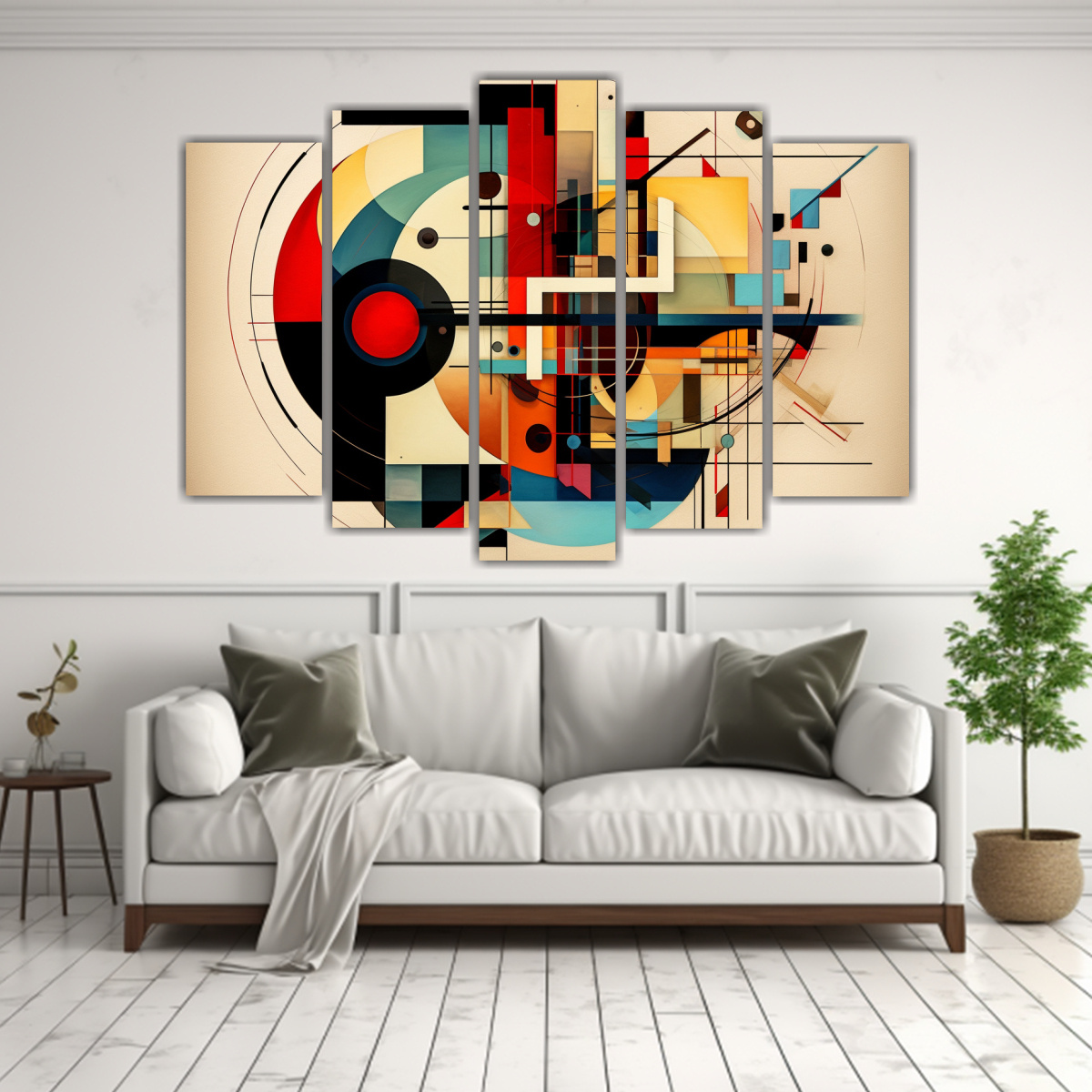 Cuadros Abstractos Con Líneas Y Cuadrados Para Decoración Del Cuarto.