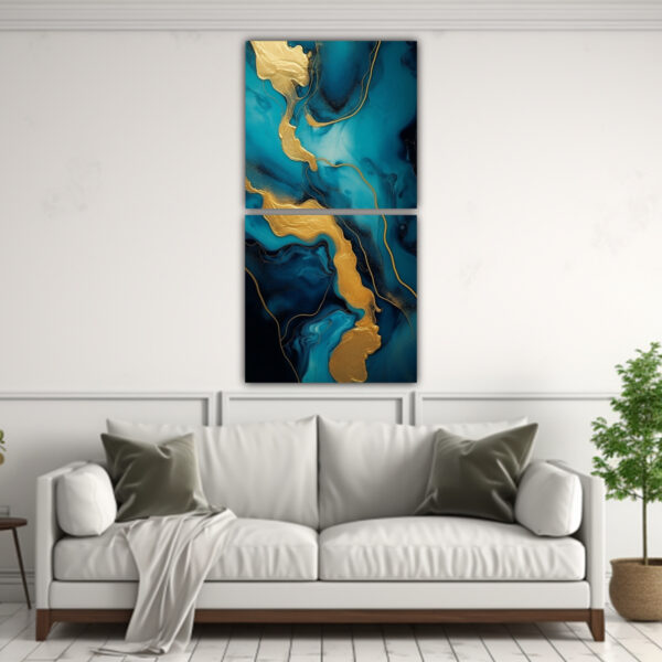 Descubre nuestros cuadros abstractos con tonos azules, dorados y negros Impresos en tela de alta calidad con bastidores de madera Diseños exclusivos y envíos express a regiones