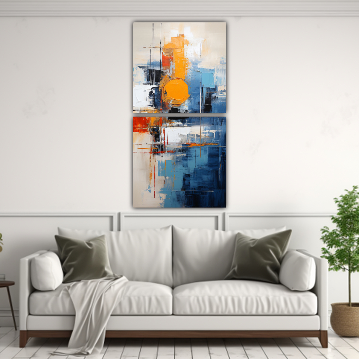 Este cuadro abstracto contemporáneo sería perfecto para decorar tu sala de estar Colócalo sobre el sofá para darle un toque moderno y colorido a tu espacio Combina los colores del cuadro con cojines y accesorios en tonos neutros para resaltar su belleza ¡Sorprende a tus invitados con esta pieza de arte única!