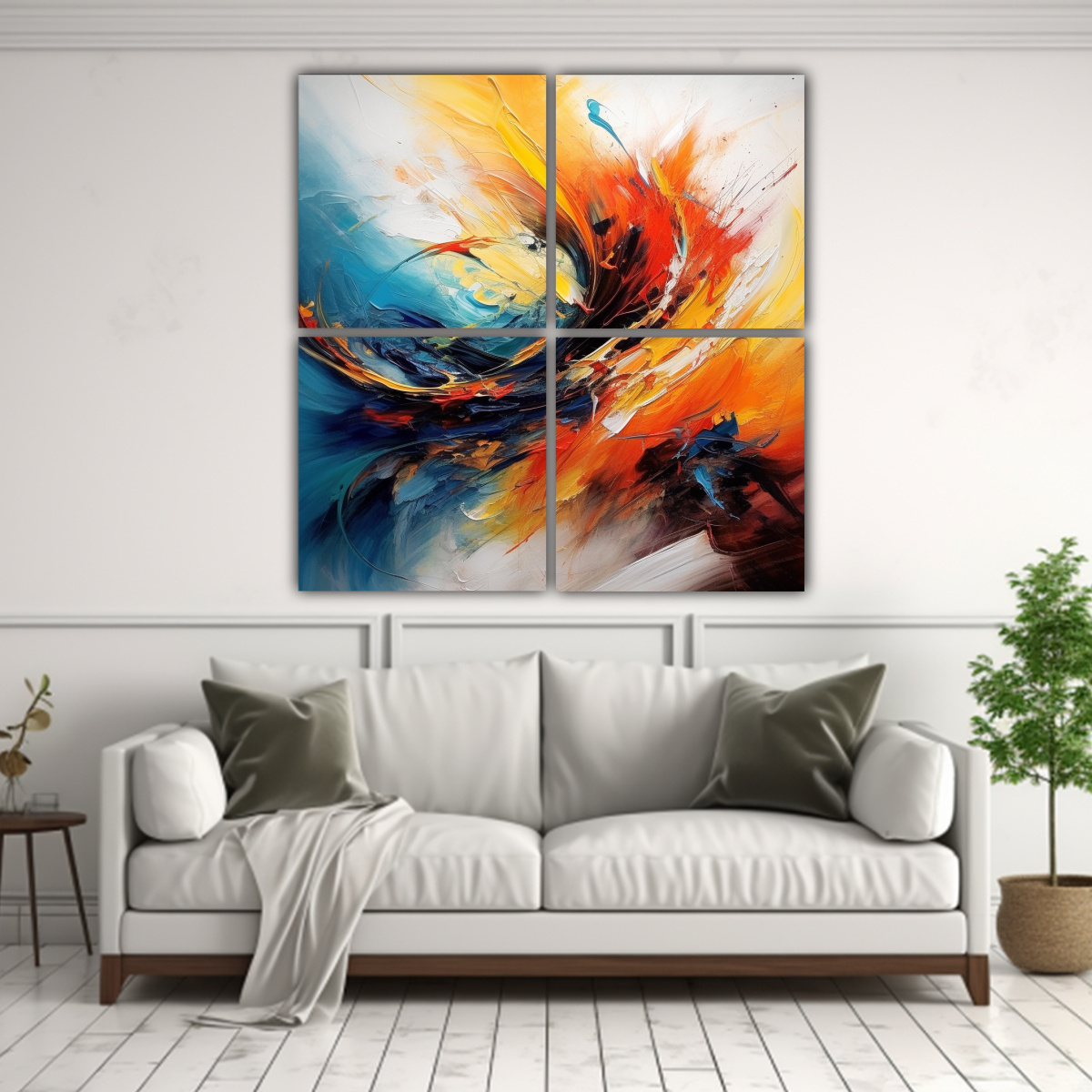 Cuadros Abstractos De 4 Telas En Bastidor Para Decoración Del Cuarto
