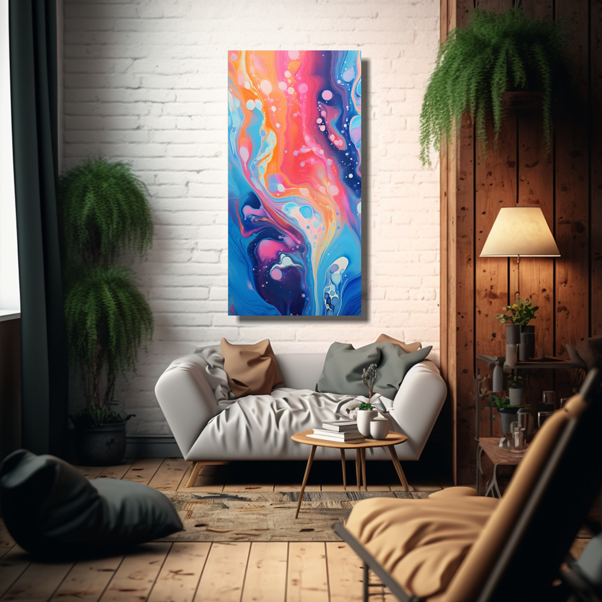 Este cuadro sería perfecto para colocar en el salón principal de tu hogar, justo encima del sofá Sus colores vibrantes y su diseño abstracto llamarán la atención de tus invitados y le darán vida a la habitación Combínalo con muebles neutros para resaltar su belleza y crea un ambiente sofisticado y moderno