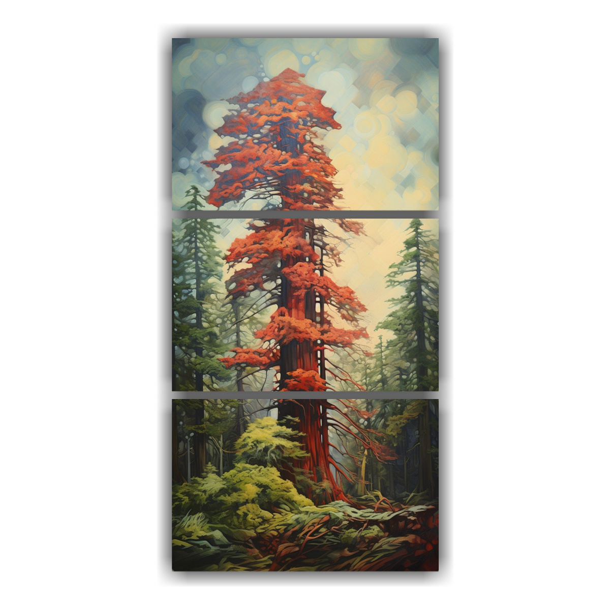 Cuadros Abstractos De Árbol De Secuoya: Set De 3 Imágenes Detalladas En Estilo Estilo Óleo.