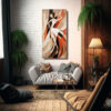 Este cuadro abstracto de bailarinas en tonos lila, negro, carmesí, beige, coral, plateado y dorado es ideal para decorar tu sala de estar o dormitorio Puedes colocarlo sobre un sofá o en una pared vacía para darle un toque de elegancia y sofisticación a tu espacio Combínalo con cojines en tonos neutros y cortinas transparentes para crear un ambiente armonioso y relajante ¡Sorprende a tus invitados con esta hermosa obra de arte!