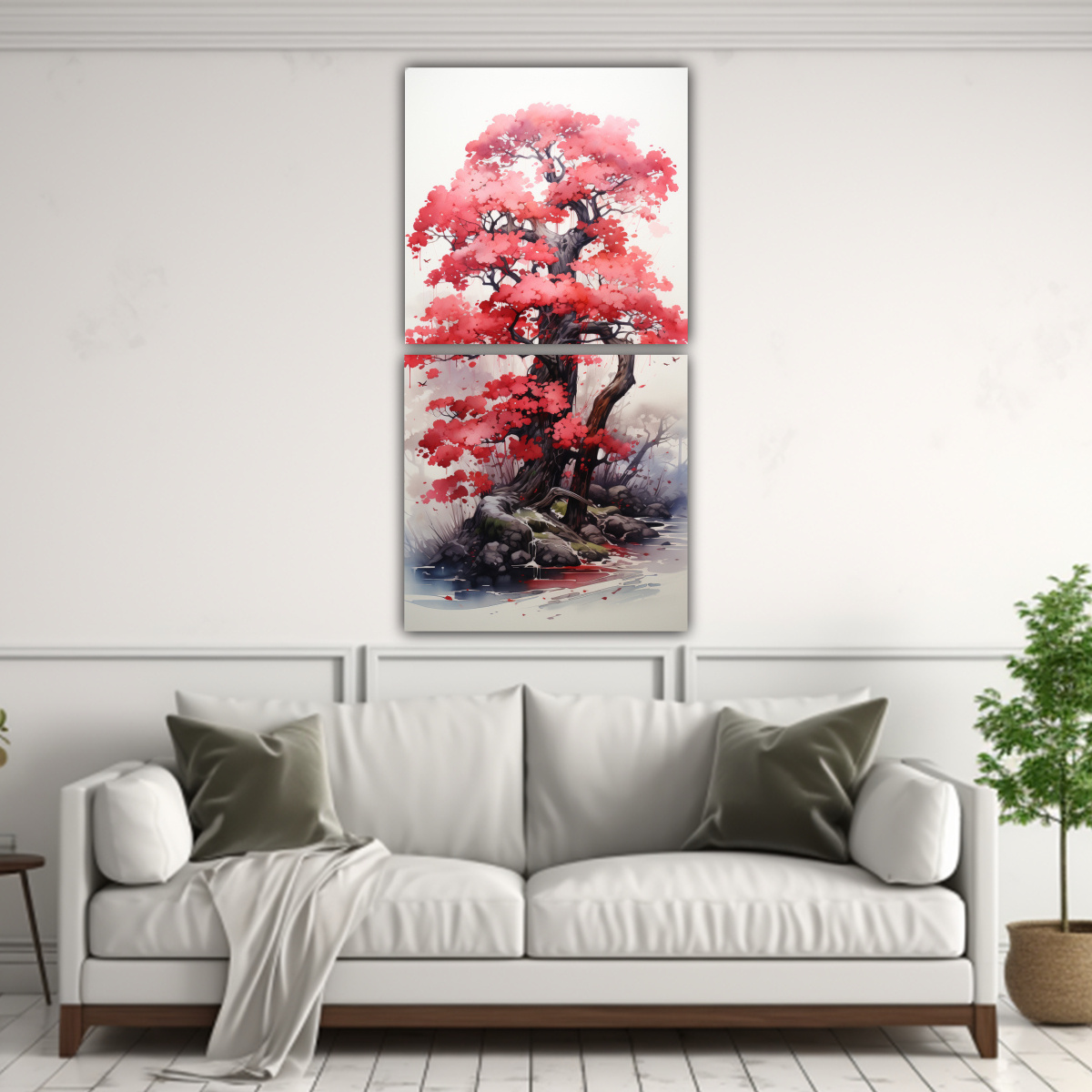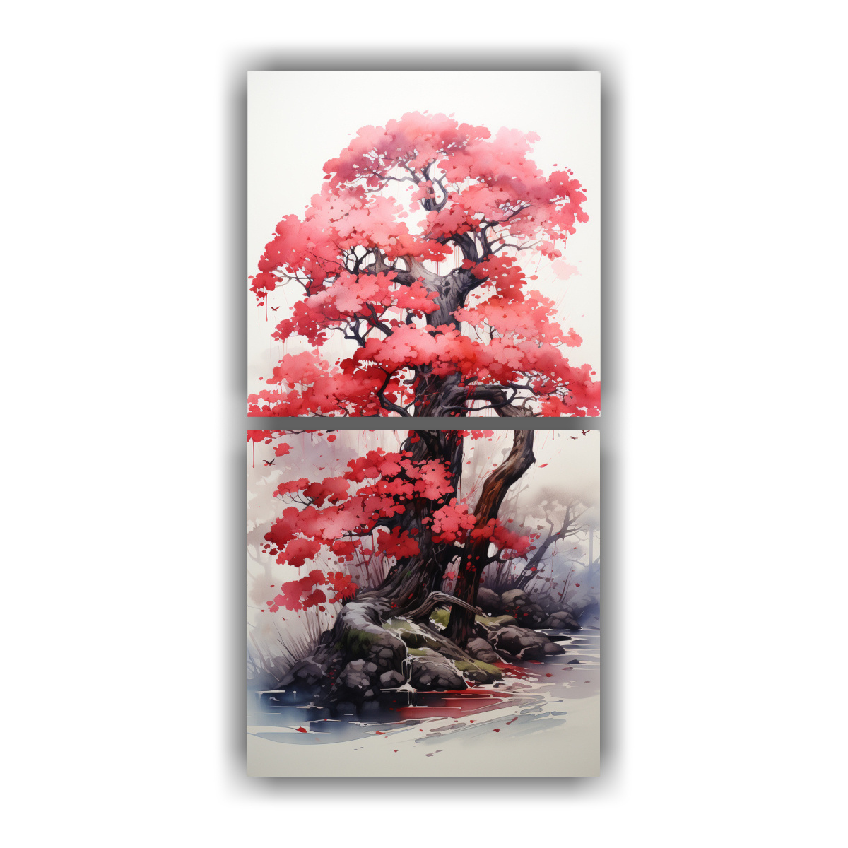 Cuadros Abstractos De Colores Rojo Y Negro – Set 2 Pinturas Creativas De árbol De Roble En Acuarela