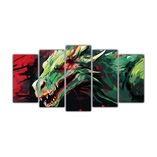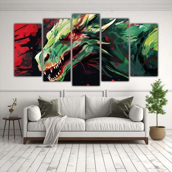 Cuadros Abstractos De Dragón En Verde Y Rojo Para Salón
