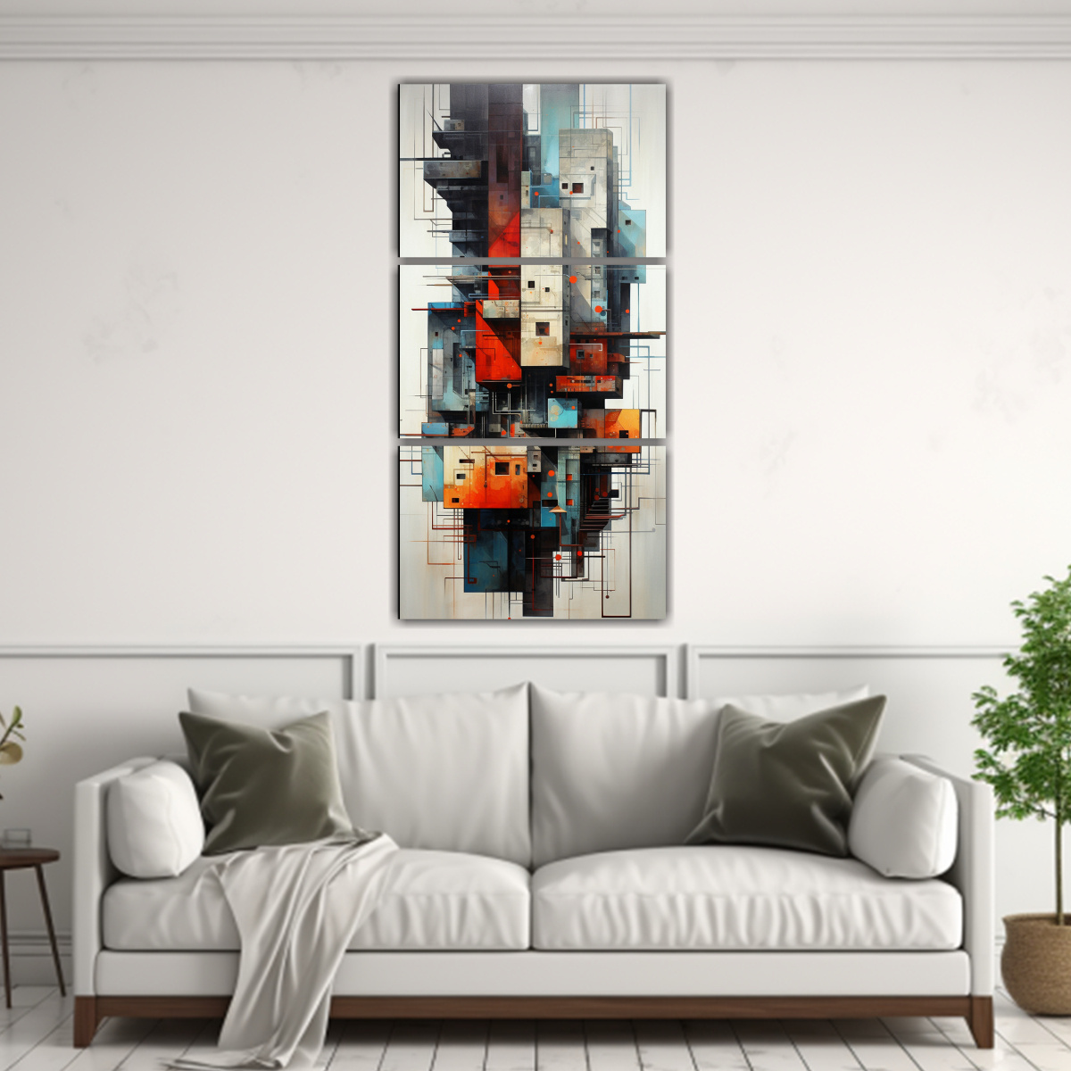 Este cuadro de edificios en movimiento es perfecto para decorar un espacio contemporáneo como la sala de estar o el área de trabajo Combínalo con muebles de colores neutros como blanco o gris, y agrega toques de color con cojines o accesorios en tonos turquesa o carmesí Colócalo en una pared amplia y despejada para que sea el centro de atención ¡Agrega estilo y dinamismo a tu hogar con este cuadro abstracto de edificios en movimiento!