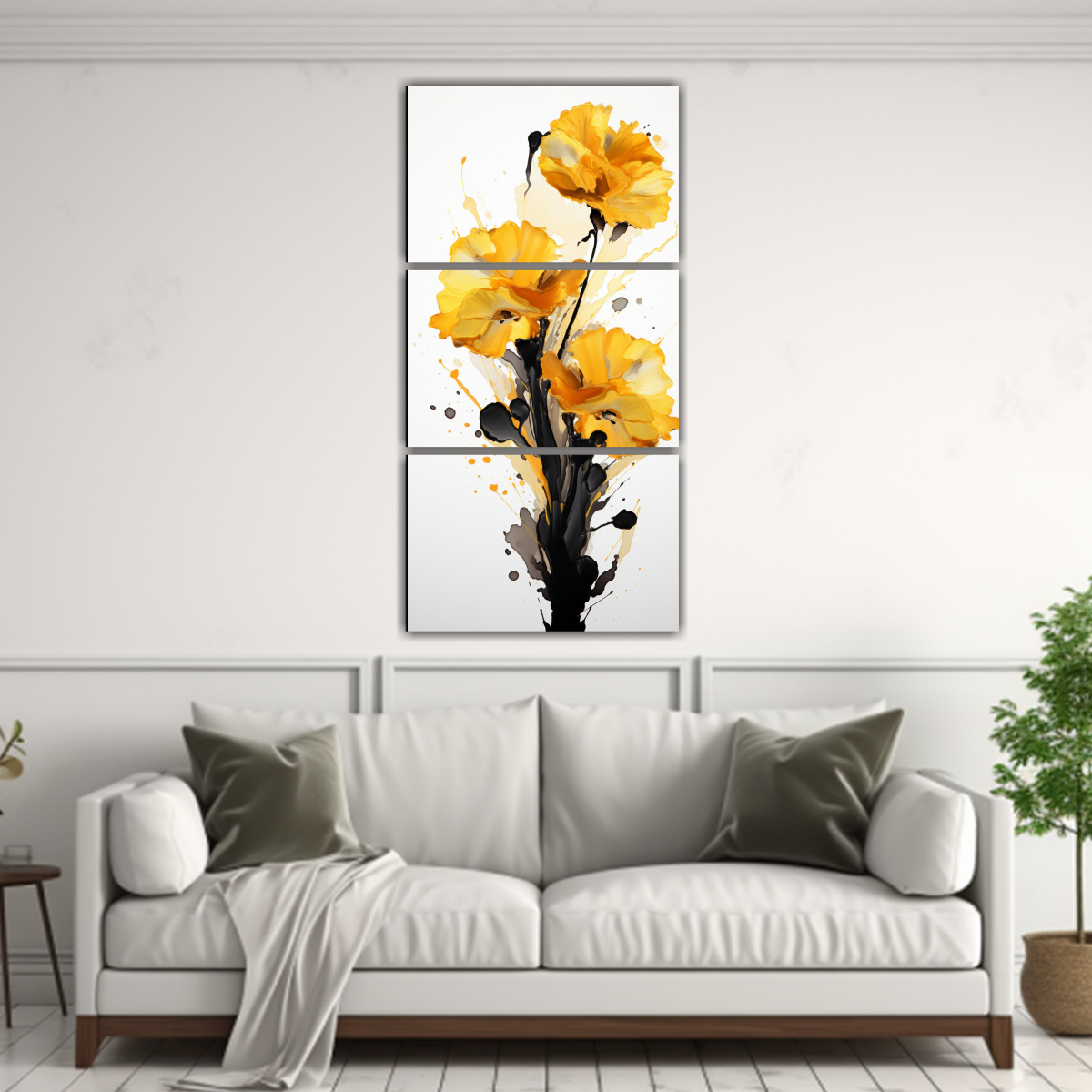 Este cuadro abstracto de flores amarillas y negras sería perfecto para añadir un toque de elegancia a tu sala de estar Colócalo sobre un sofá gris para destacar los tonos amarillos y agregar un contraste sofisticado a la decoración