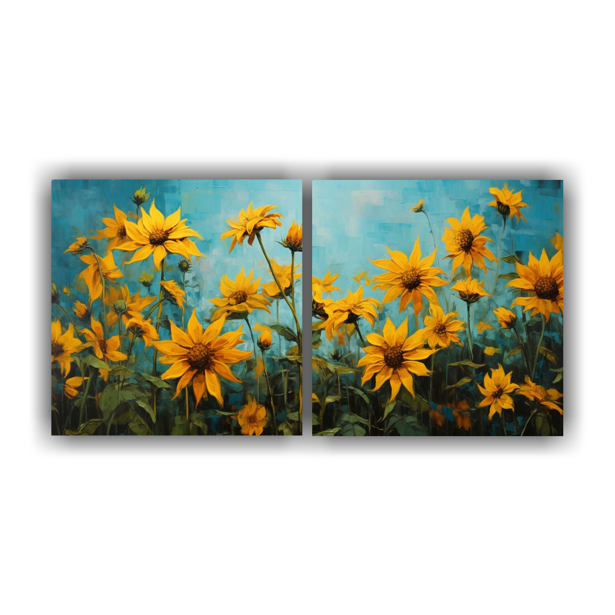 Decora tu hogar con nuestros cuadros abstractos de flores de Alcachofa de Jerusalén con finas líneas en turquesa, mostaza, menta, azul marino grisaceo, chocolate, verde azulado, gris y plateado Diseños exclusivos y entrega rápida