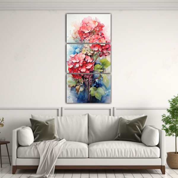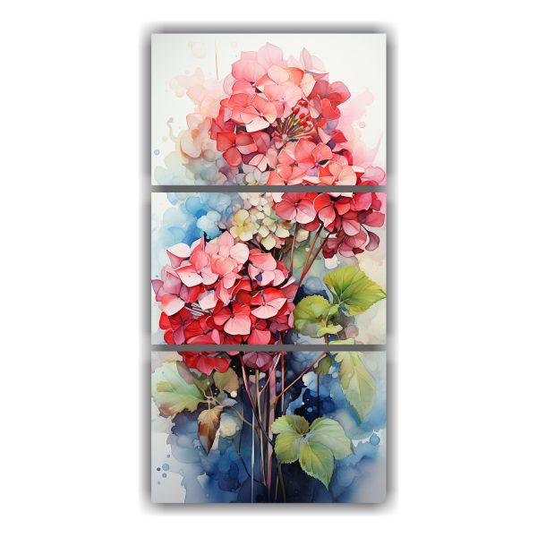 Cuadros Abstractos De Hortensias En Verde Y Rojo: Decoración De Pared.