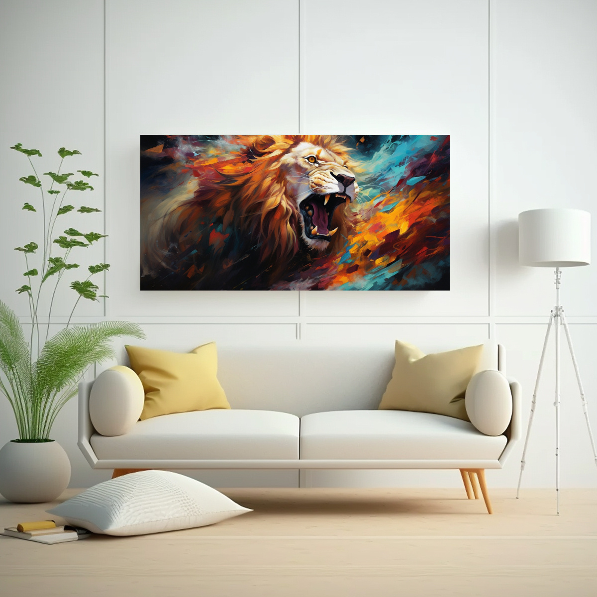 Coloca el cuadro de cuadros abstractos de leones en lienzo en tu sala de estar para crear un ambiente espectacular Combínalo con muebles en tonos neutros o blancos para resaltar los colores vibrantes del cuadro También puedes colocarlo en un pasillo o en la pared de tu dormitorio para agregar un toque de elegancia y estilo a tu espacio