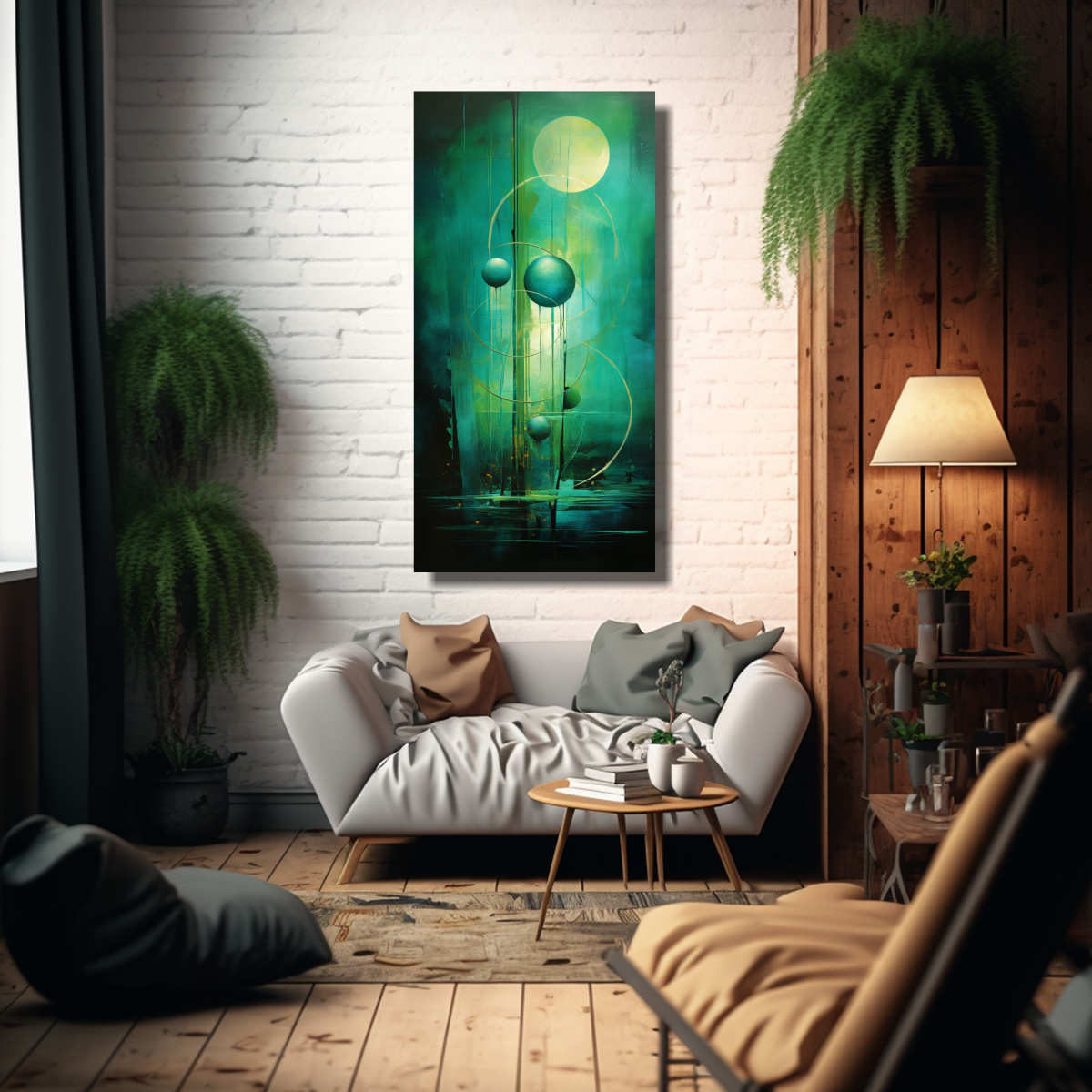 Recomendamos colocar este cuadro en un salón o sala de estar con una paleta de colores neutra como el blanco, el gris o el beige El contraste de los tonos verde agua del cuadro con los colores neutrales creará un ambiente relajante y sofisticado Además, puedes combinarlo con cojines y cortinas en tonos similares para lograr una decoración armoniosa