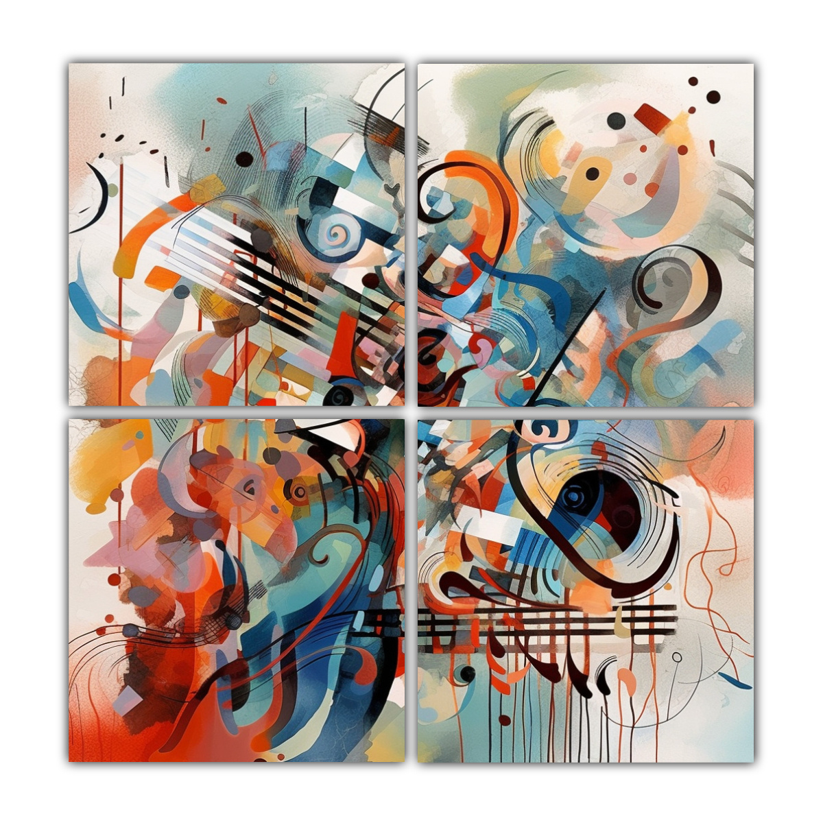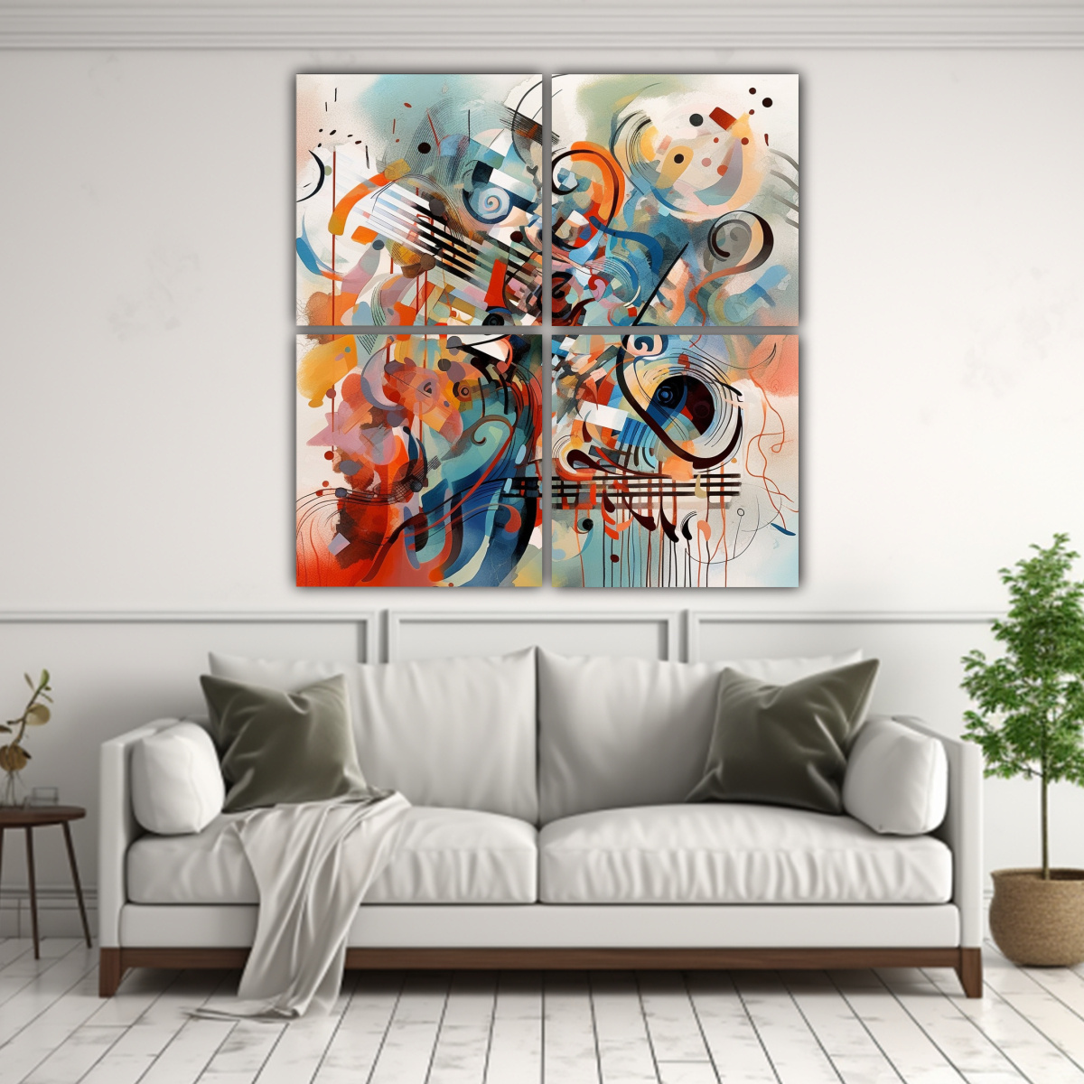 Coloca el cuadro ‘Cuadros abstractos de música WhipSmart’ en tu sala de estar para crear un ambiente moderno y sofisticado Combínalo con muebles en tonos neutros como blancos o grises, y agrega cojines en colores coral o turquesa ¡Verás cómo realza la decoración de tu hogar!