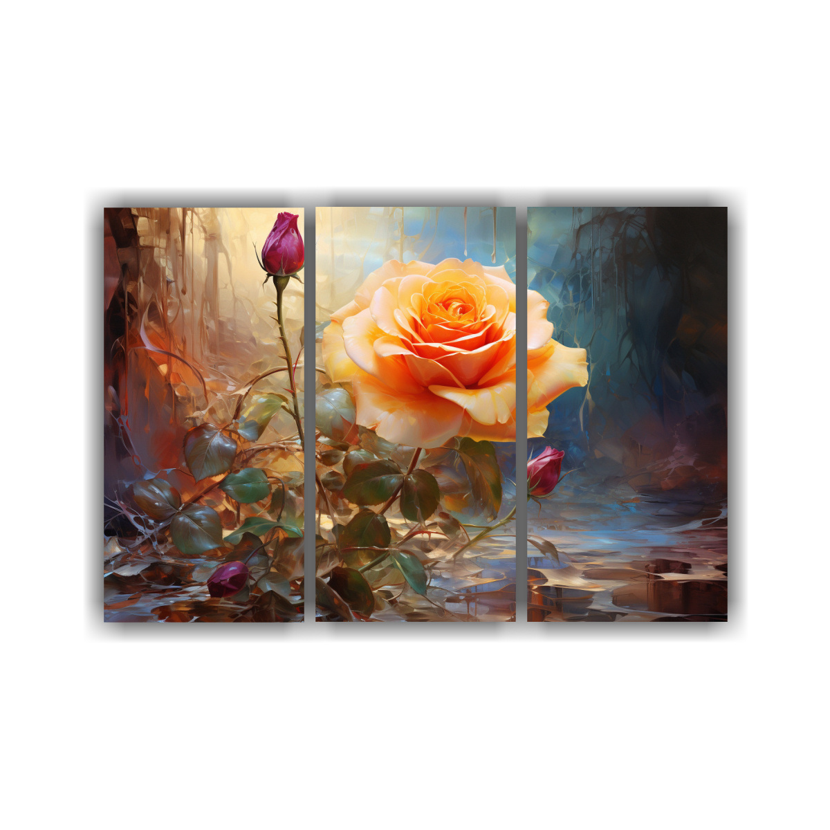 Este cuadro de rosas amarillas y rojas en movimiento elegante sería ideal para realzar la elegancia de tu sala de estar o dormitorio Colócalo sobre un mueble blanco para un contraste cautivador