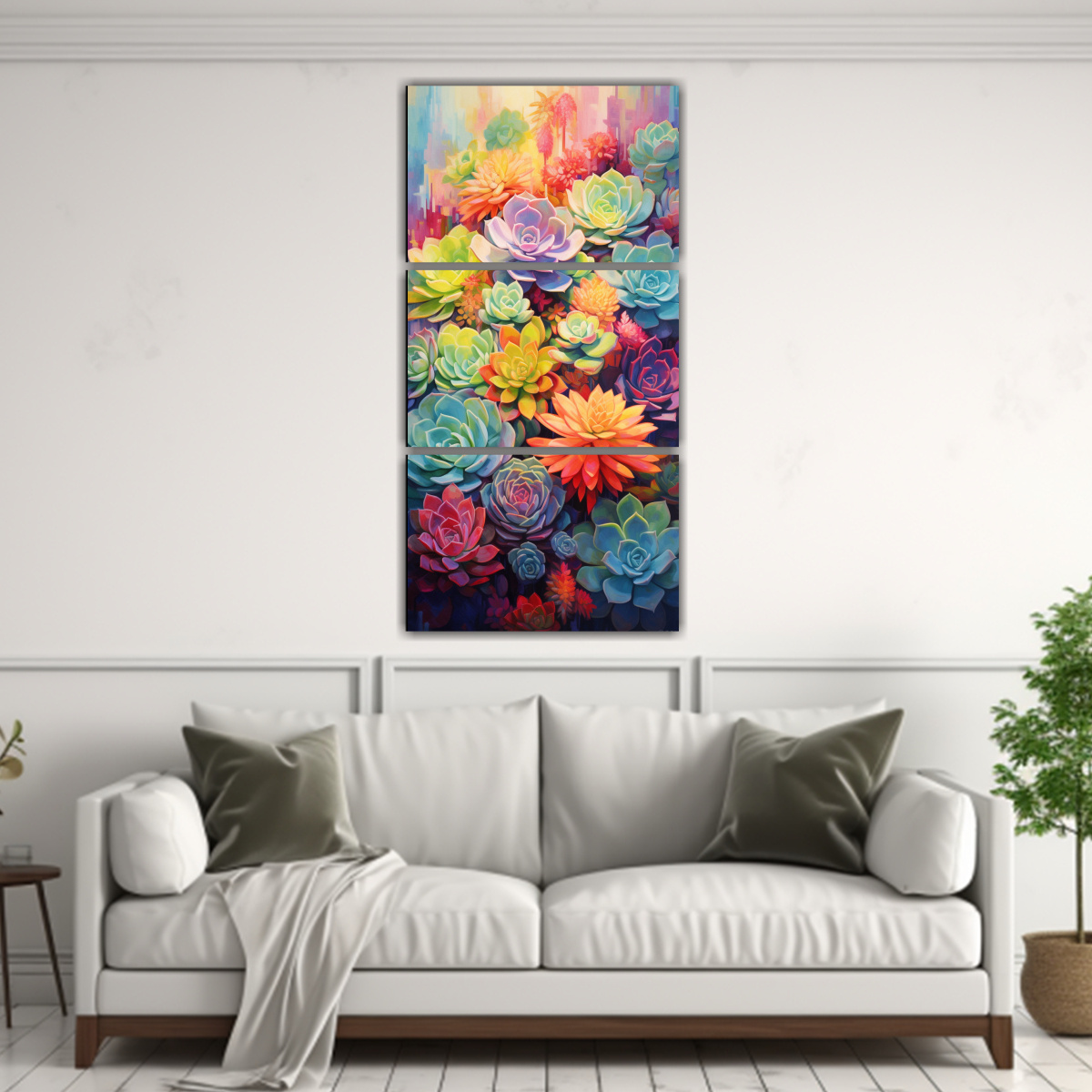 Renueva la decoración de tu cuarto con estos tres cuadros abstractos que capturan la belleza de las suculentas y flores en una vibrante paleta de colores Ideales para crear un ambiente fresco y moderno Añade un toque de naturaleza y elegancia a tu espacio