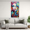 Este cuadro abstracto de tela con colores vivos y una inspiración majestuosa será el punto focal ideal para tu sala de estar Combínalo con muebles en tonos neutros para crear un contraste elegante y moderno Además, puedes complementar la decoración con cojines en colores que resalten del cuadro, como dorado o turquesa, para crear un ambiente aún más vibrante y sofisticado