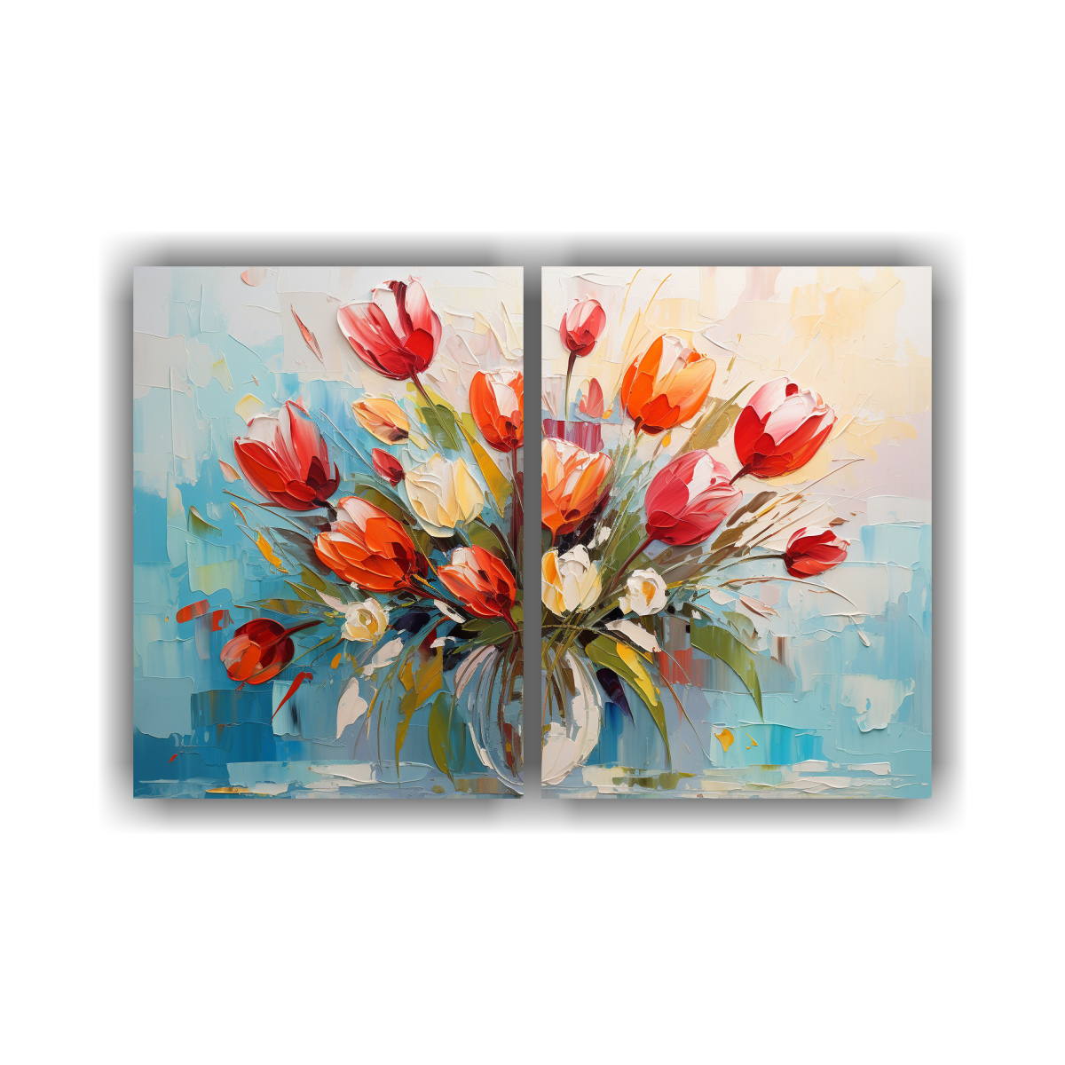 Cuadros Abstractos De Tulipanes Rojos Y Turquesa: Dos Artes Fantasía Vanguardia