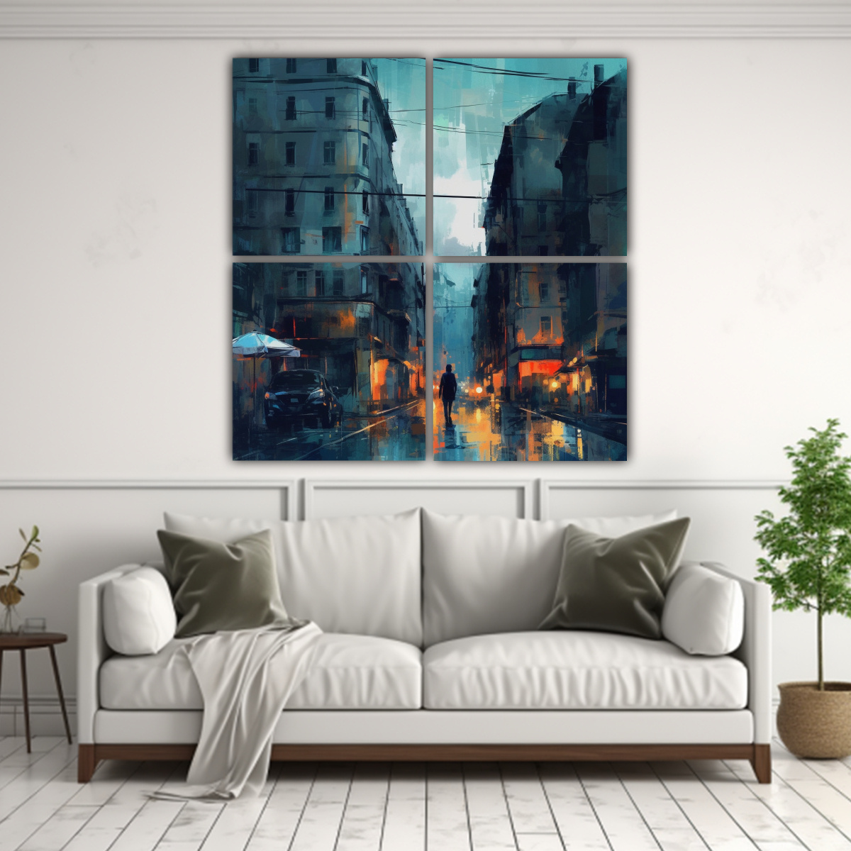 Una excelente ubicación para colocar estos Cuadros Abstractos Decorativos Ciudad Vibrante Gris y Melancólica es en la sala de estar, sobre un sofá en tonos neutros como el gris o el beige Estos cuadros agregarán un toque de elegancia y modernidad al espacio, creando un ambiente acogedor y sofisticado También puedes combinarlos con cojines en tonos similares para lograr una decoración armoniosa y equilibrada