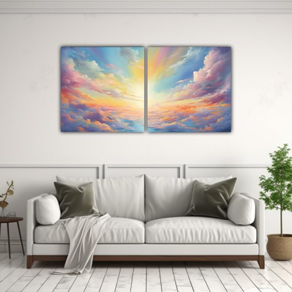 Cuadros Abstractos Dormitorio: Composición Amanecer Con Colores Arcoíris.