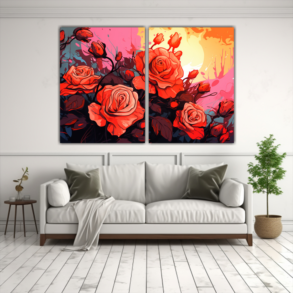Cuadros Abstractos Dormitorio En Naranja Y Rosa, Estilo Neonoir.