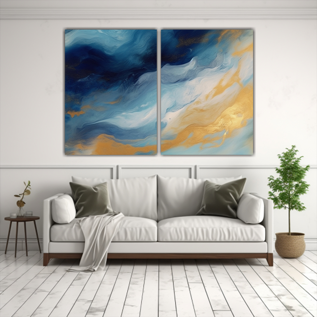 Cuadros Abstractos Dormitorio: Formas Orgánicas En Azul