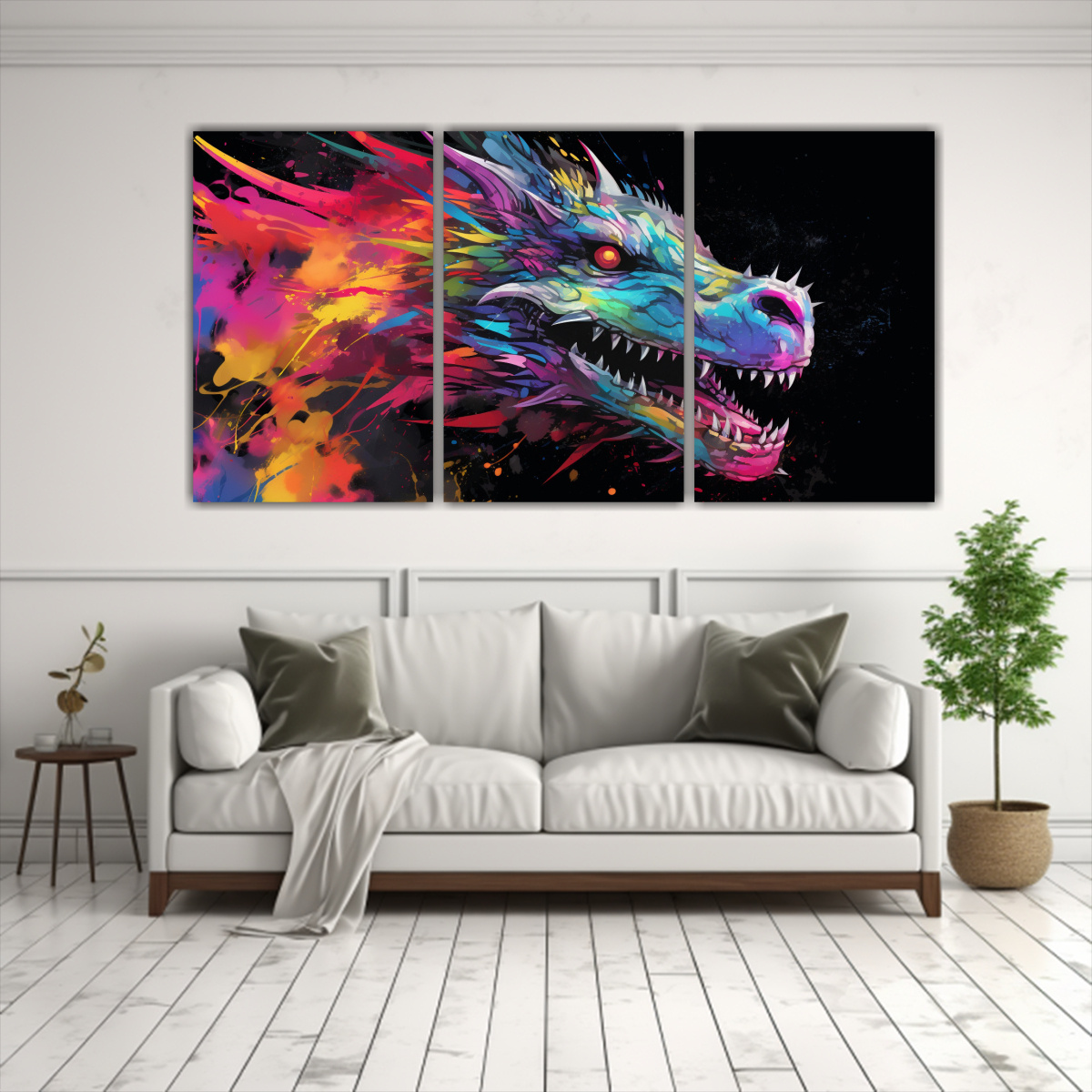 Añade un toque neonoir a tu hogar con el Cuadro Abstracto de Dragón Arcoíris y Negro Envío gratis en Santiago y rápidas entregas en todo Chile