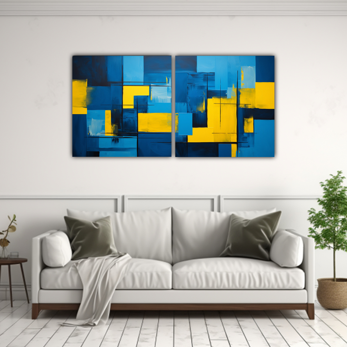 Cuadros Abstractos En Azul Y Amarillo De Dos Artes Concepto
