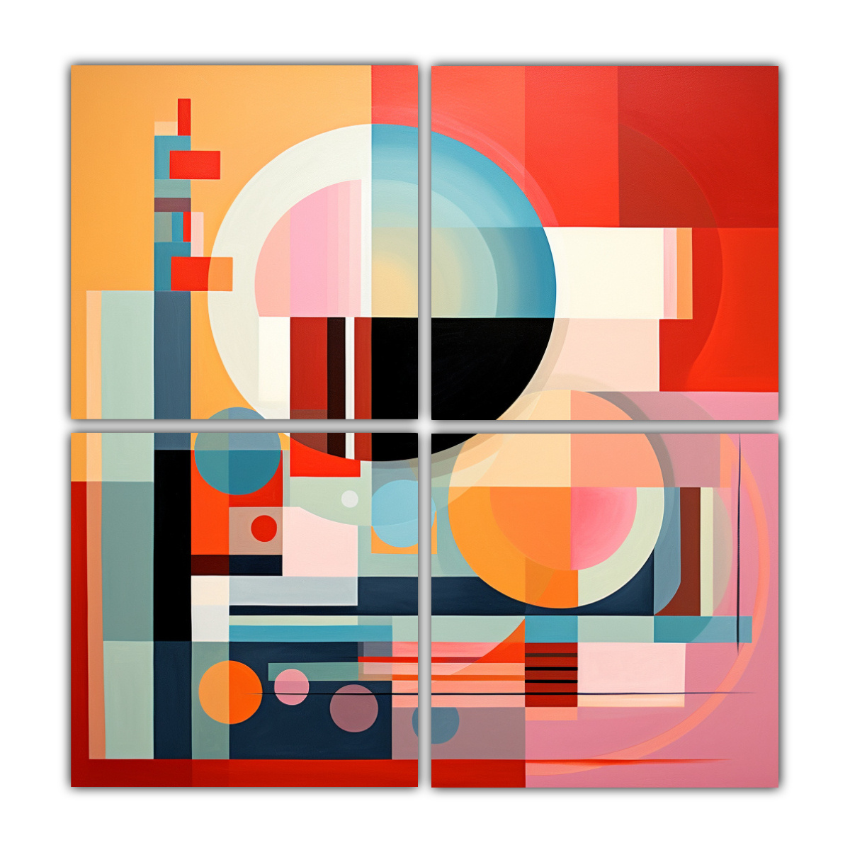 Cuadros Abstractos En Bastidor Con Movimiento, Colores Atrevidos Y Formas Geométricas Modernas.