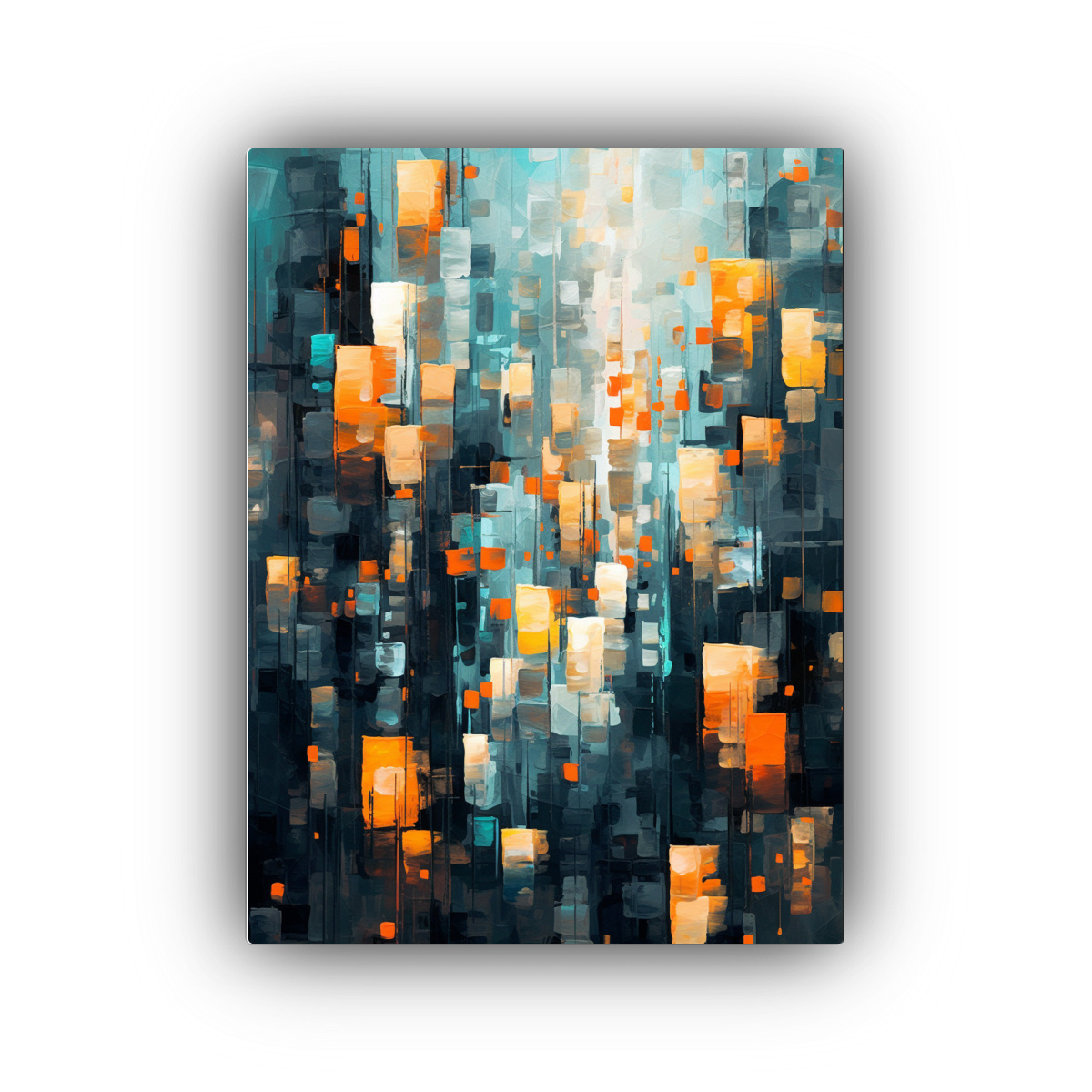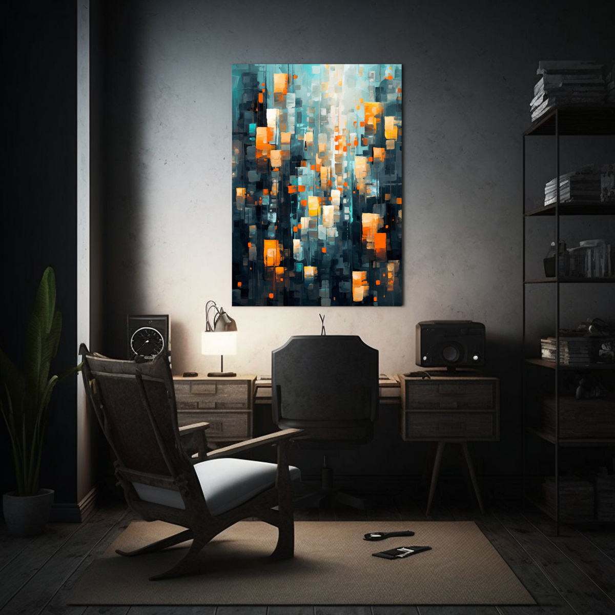 Coloca este cuadro abstracto en bastidor en tu sala de estar para darle un toque moderno y sofisticado Combina los tonos plateado, turquesa, azul marino grisaceo, gris, anaranjado y carmesí con muebles y accesorios en tonos neutros para crear un contraste llamativo ¡Atrévete a ser audaz y dale vida a tus espacios con este cuadro exclusivo de DecoCuadros!