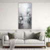 Este cuadro se vería espectacular en un salón o sala de estar, colocado sobre un sofá de tonos neutros Su diseño abstracto en blanco y gris complementará la paleta de colores y añadirá un toque de elegancia a la decoración