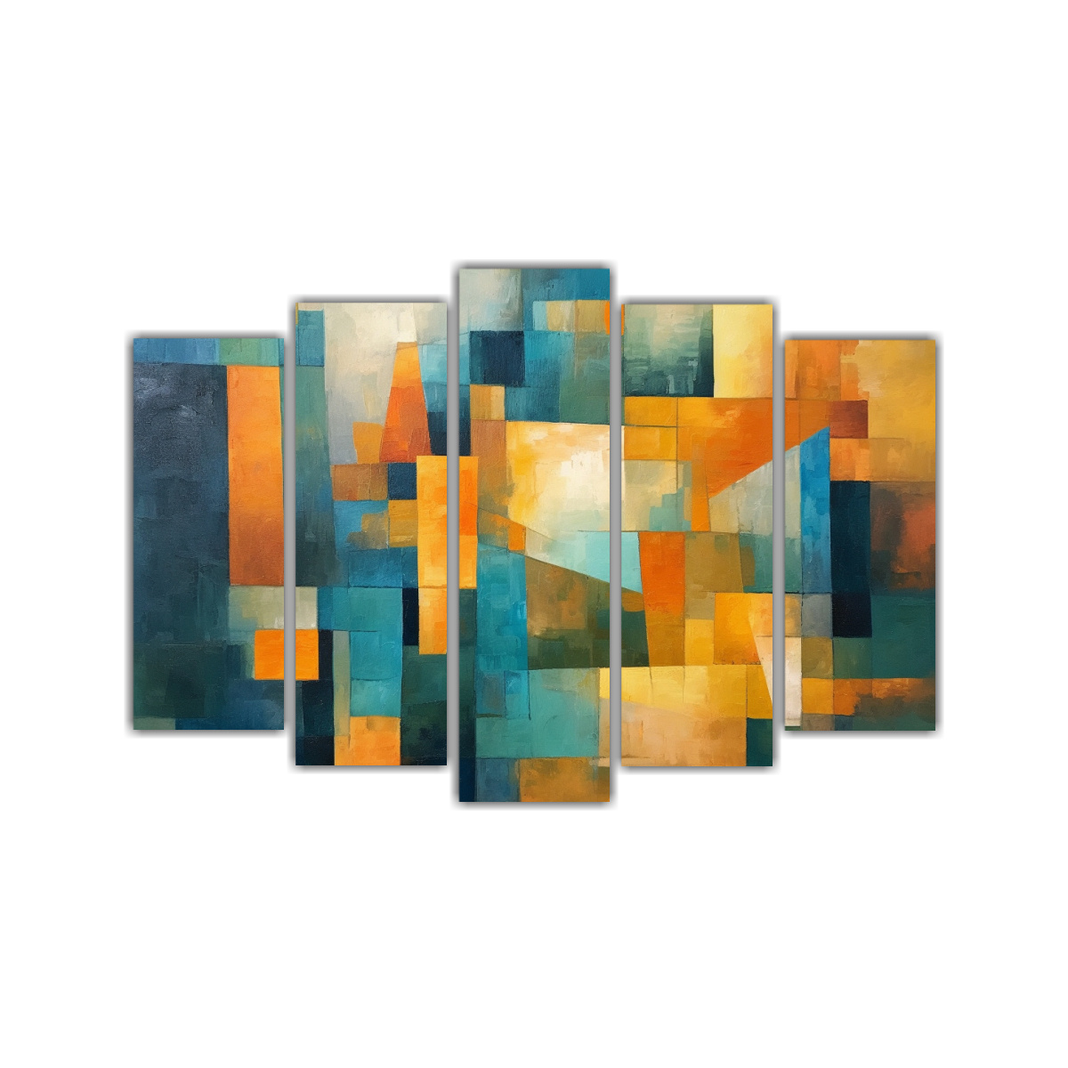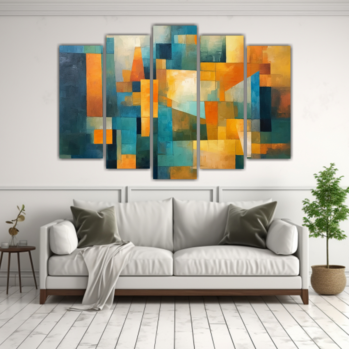 Cuadros Abstractos En Estilo Cubista Con Colores Oscuro Y Vibrantes