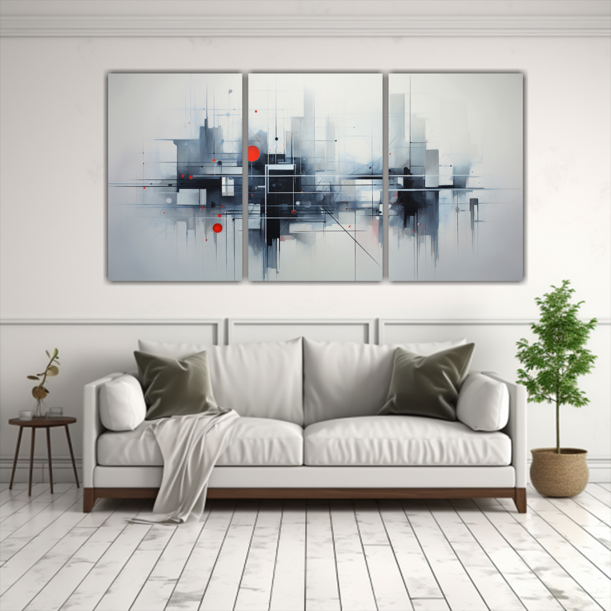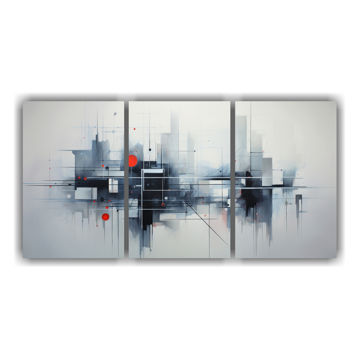 Cuadros Abstractos En Grises: Tres Telas En Bastidor Tema Riqueza Visual