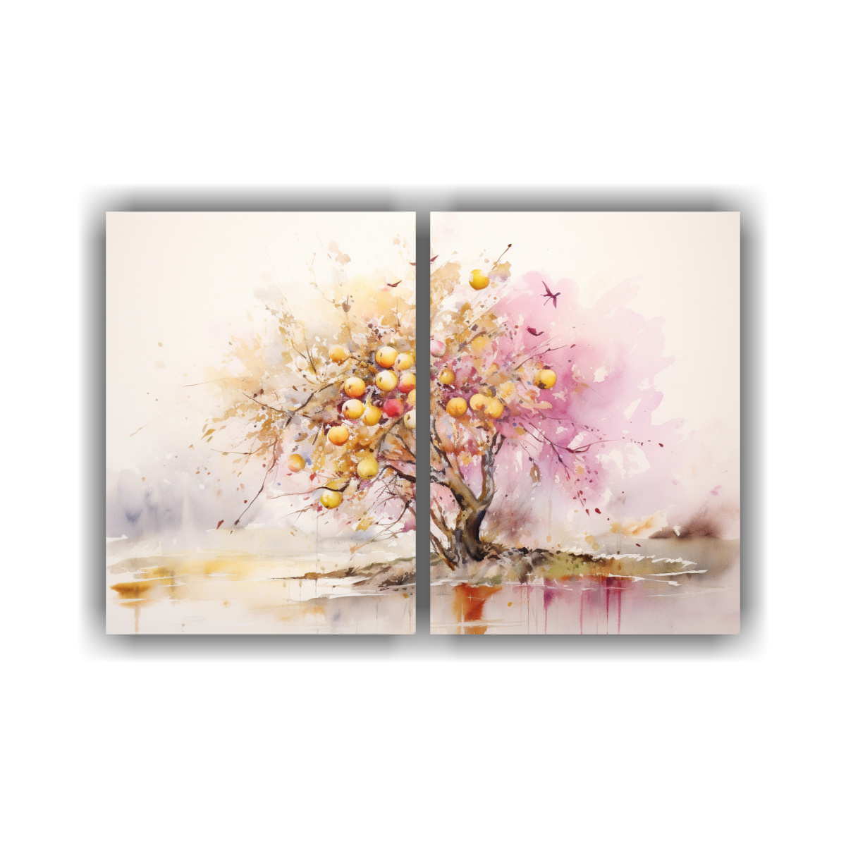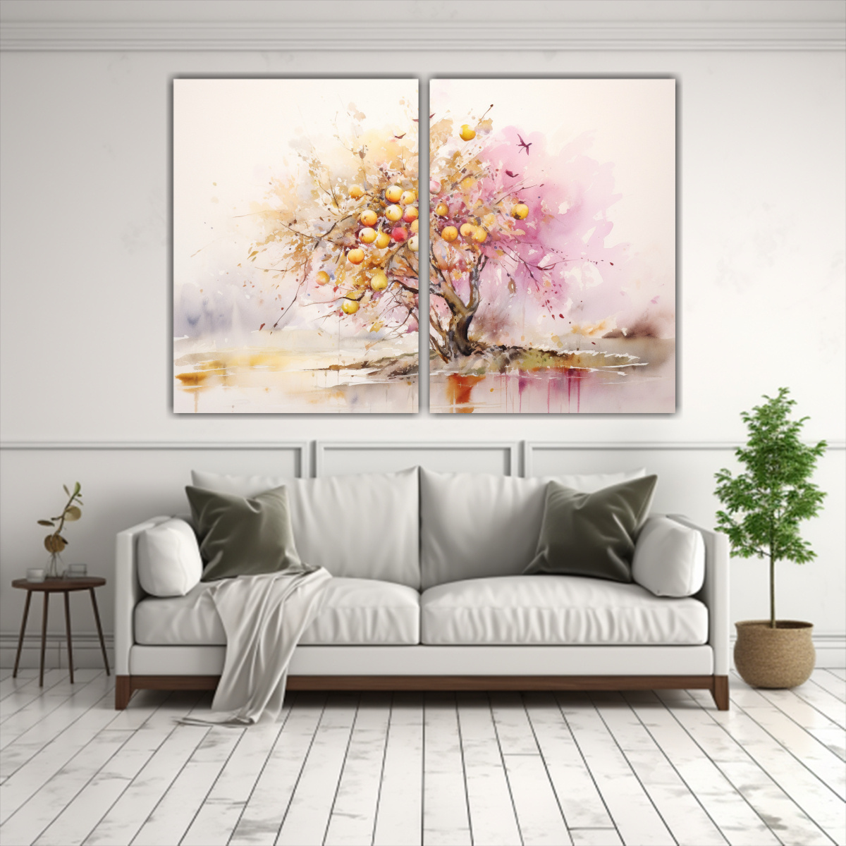 Cuadros Abstractos En Tonalidades Oro Y Rosa De Un Manzano.