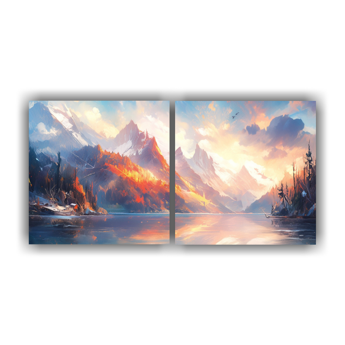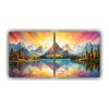 Cuadros Abstractos Enigmáticos De Montañas Junto Al Lago Con Colores Vibrantes