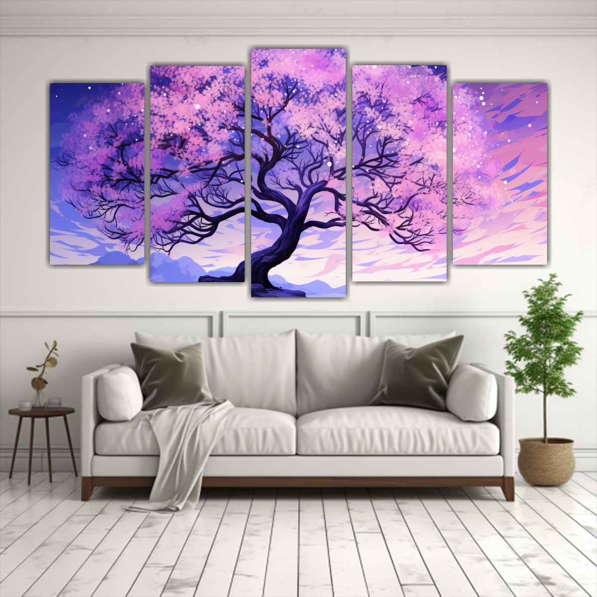 Este set de 5 cuadros abstractos estilo galería con un toque de imp en lila, azul marino grisaceo, beige, violeta y gris se vería espectacular en un salón moderno con muebles en tonos neutros como blanco o gris claro Coloca los cuadros en una pared blanca para que resalten y crea un ambiente sofisticado y elegante ¡Será el centro de atención de tus invitados!