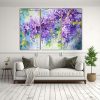 Este cuadro sería perfecto para decorar una sala de estar de estilo moderno Colócalo sobre un sofá de color neutro para resaltar su belleza y combinar los tonos morados con cojines o accesorios en tonos plateados, grises y turquesas