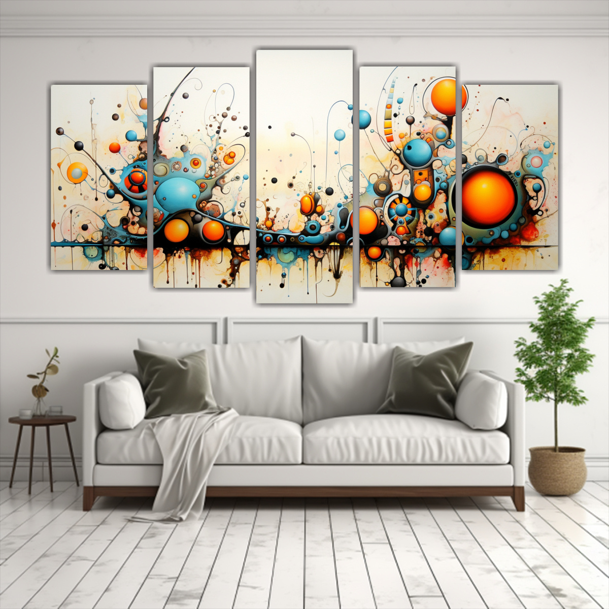Coloca este cuadro políptico abstracto en tu sala de estar para darle un toque moderno y elegante a tu espacio Combina los colores beige, azul marino grisaceo, carmesí, mostaza, plateado, turquesa, menta y lila con muebles de tonos neutros para resaltar su expresividad