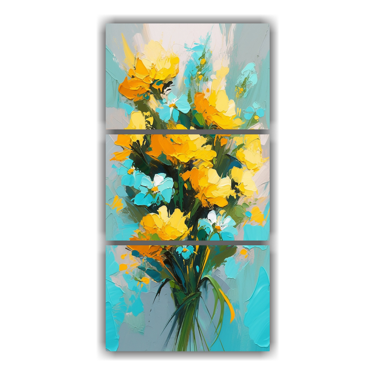 Cuadros Abstractos Flores Amarillo Y Turquesa Arte En Lienzo