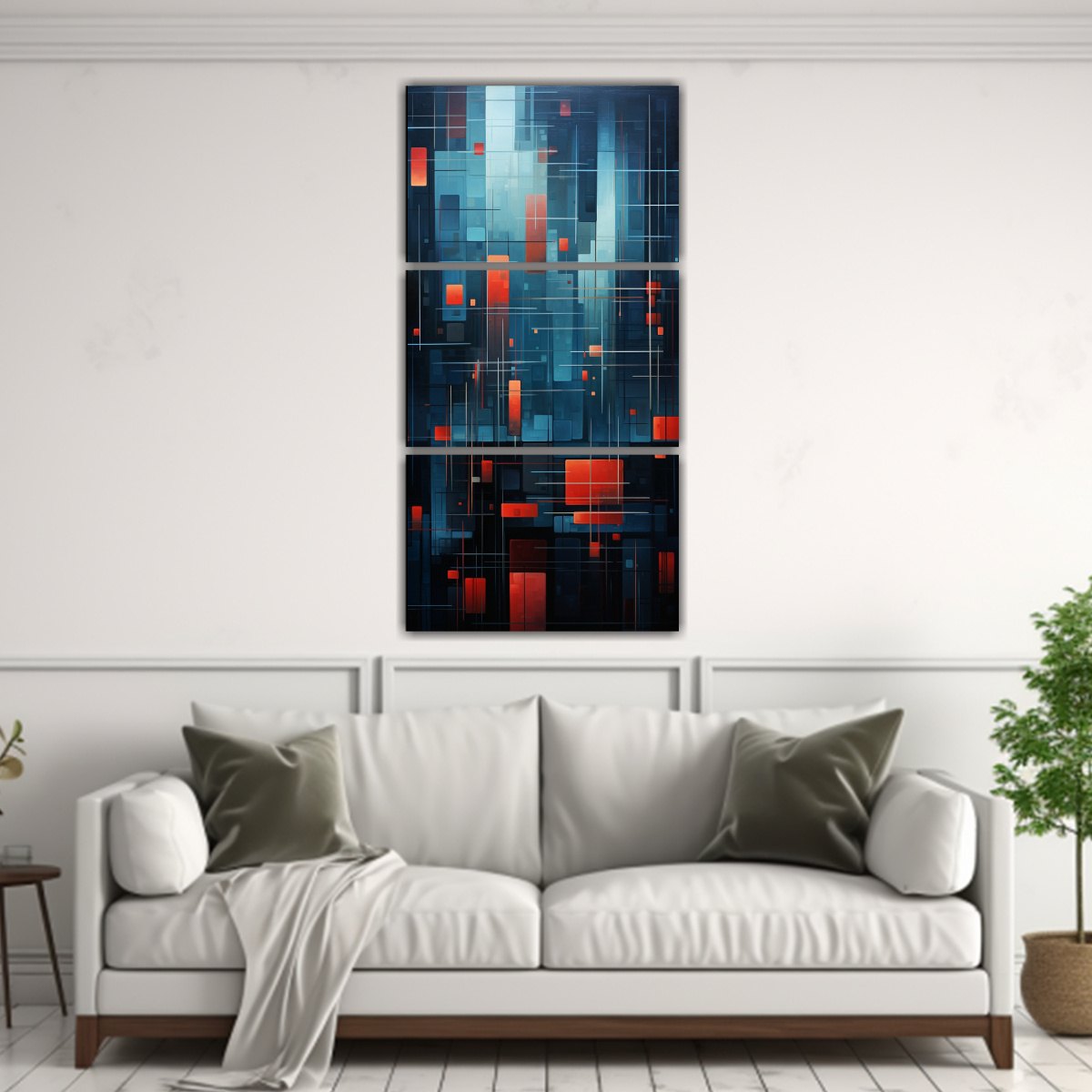Renueva tu hogar con este bonito Set de 3 Telas en Bastidor Modernos que representan la abstracción geométrica de una ciudad Con entrega rápida y gratuita en Santiago, y envíos express a regiones Atrévete a decorar con estilo y originalidad