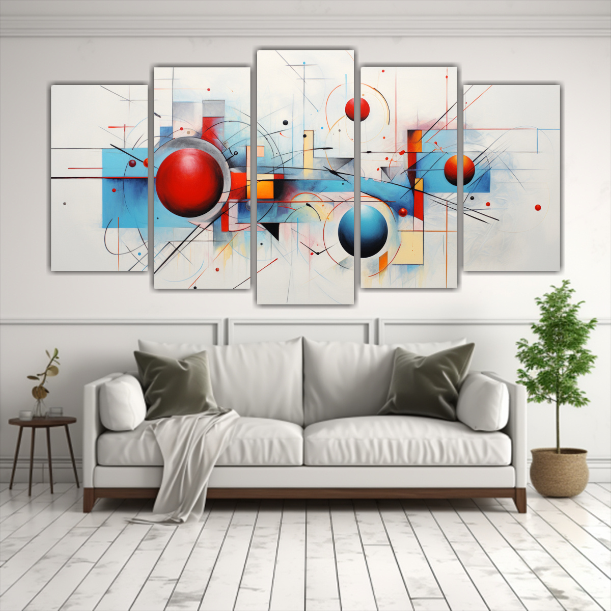 Este cuadro abstracto grande en lienzo moderno sería perfecto para decorar tu sala de estar Colócalo sobre un sofá beige y combínalo con cojines en tonos coral y turquesa Agrega una alfombra plateada y algunos detalles en lila para completar la decoración ¡Crearás un espacio elegante y contemporáneo!