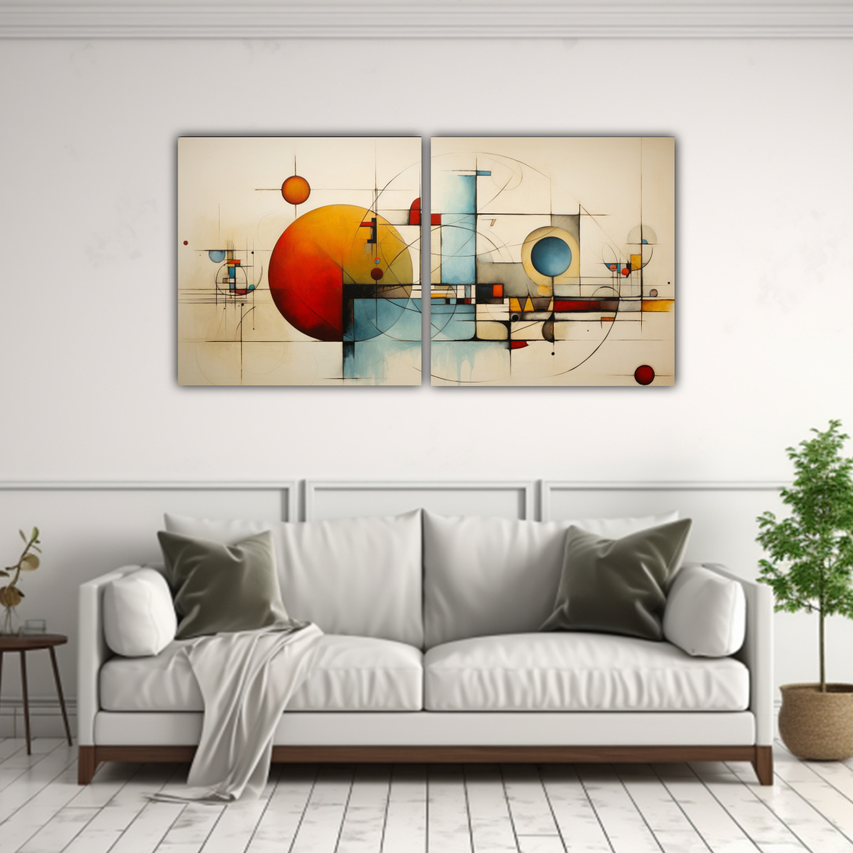 Este cuadro abstracto grande en tonos plateado, azul marino grisaceo, carmesí, mostaza, gris, beige y turquesa sería perfecto para decorar una sala de estar moderna Puedes colocarlo sobre un sofá de color neutro para crear un contraste elegante, o combinarlo con cojines en tonos similares para una armonía estética ¡Atrévete a darle un toque de color y estilo a tu espacio con este cuadro exclusivo de DecoCuadros!