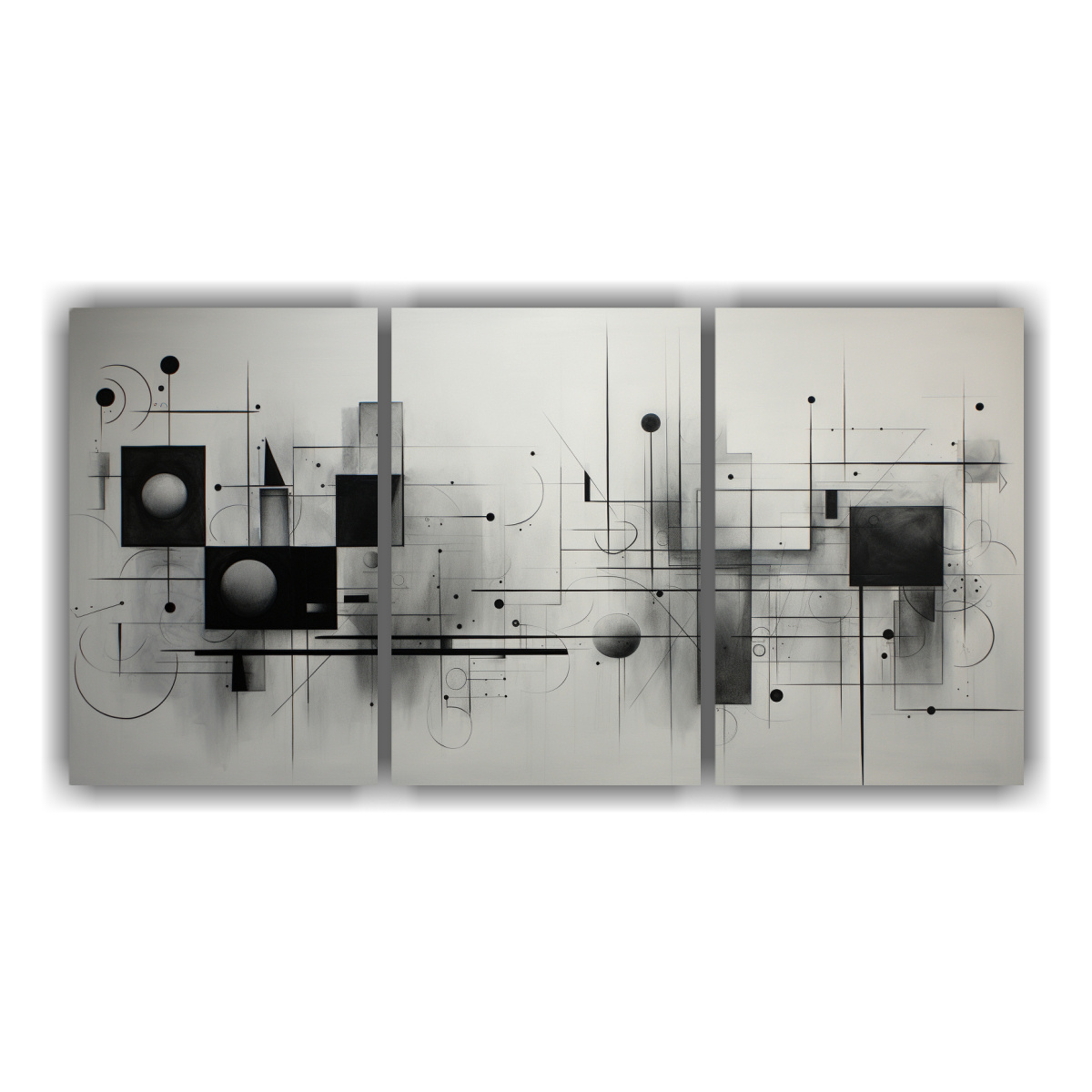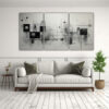 Coloca estos tres cuadros abstractos en tonos grises en tu sala de estar, creando un punto focal en la pared principal Combínalos con muebles en tonos neutros y accesorios en colores metalizados para lograr un ambiente moderno y elegante ¡Aprovecha nuestras entregas rápidas y gratuitas en Santiago!