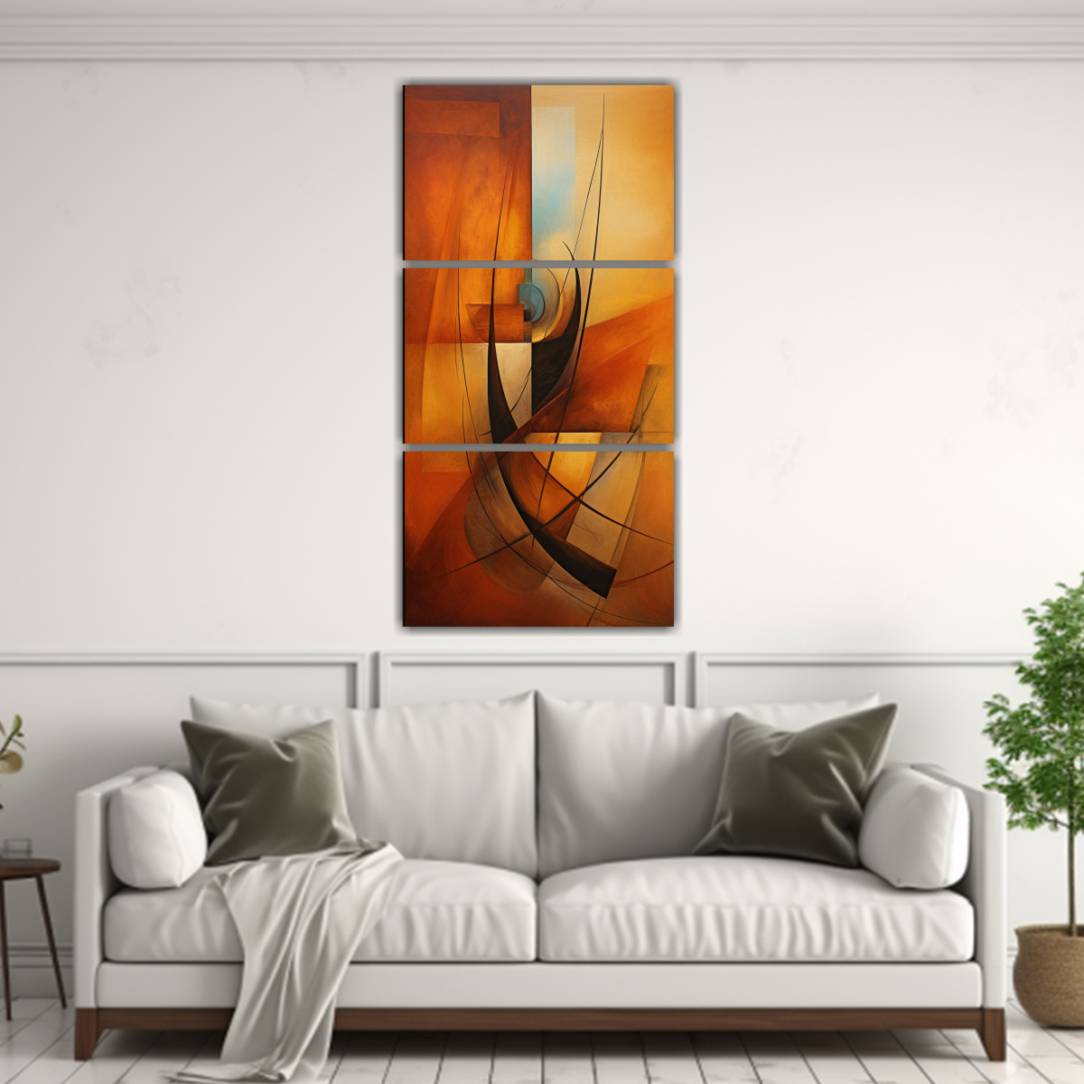 Coloca este impresionante tríptico de cuadros abstractos en tu sala de estar para darle un toque moderno y elegante Combina con muebles de tonos neutros para resaltar la belleza de los colores plateado, chocolate, coral y gris ¡Transforma tu espacio con estilo!