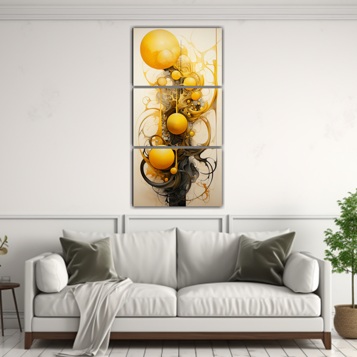 Este set de cuadros abstractos en tonos amarillos es ideal para decorar tu sala de estar Colócalos juntos en una pared de tonos neutros para crear un impacto visual único y moderno Combínalos con muebles en tonos cálidos para un ambiente acogedor y elegante