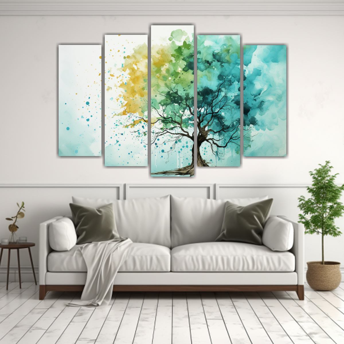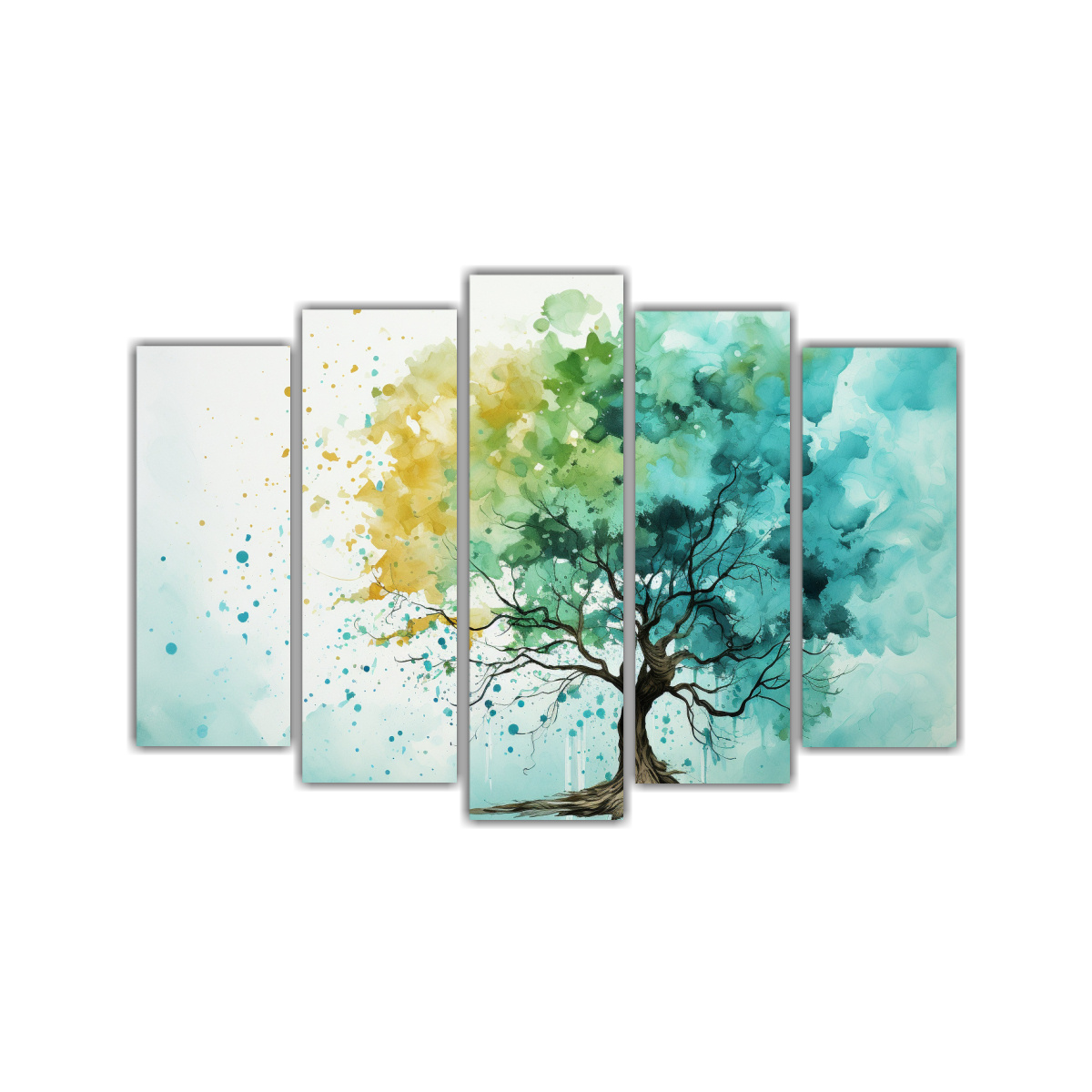 Renueva tu hogar con el Set de 5 Cuadros Espectacular Intensidad Árbol Roble en tonos turquesa Impresos en tela de alta calidad con bastidores de madera Añade sofisticación y estilo a tu sala de estar, dormitorio o estudio