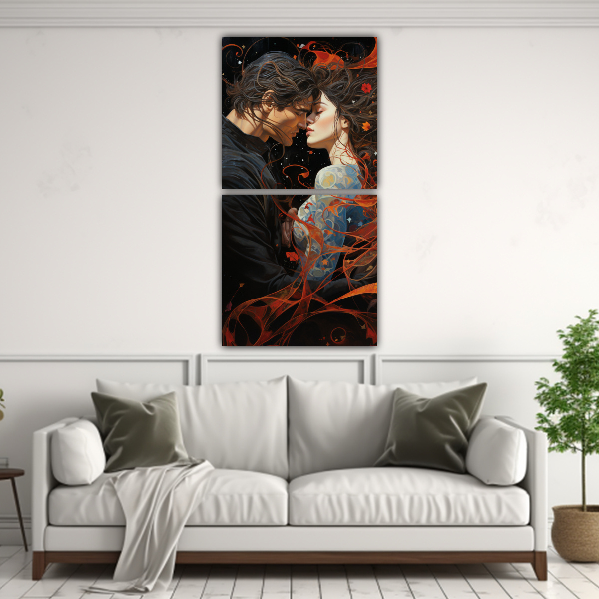 Este cuadro abstracto Intertwined de amantes con destinos cruzados sería ideal para decorar una sala de estar elegante y moderna Combínalo con muebles de tonos neutros como el gris o el blanco, y agrega algunos cojines en colores que resalten, como el rojo o el azul marino Colócalo en una pared principal para que sea el centro de atención de la habitación ¡Será un punto de conversación garantizado!
