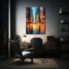 Coloca el cuadro Urban Rhythms en tu sala de estar para crear un ambiente juvenil y vibrante Combínalo con muebles blancos y accesorios en tonos neutros para resaltar los colores del cuadro Será el centro de atención y le dará vida a tu espacio